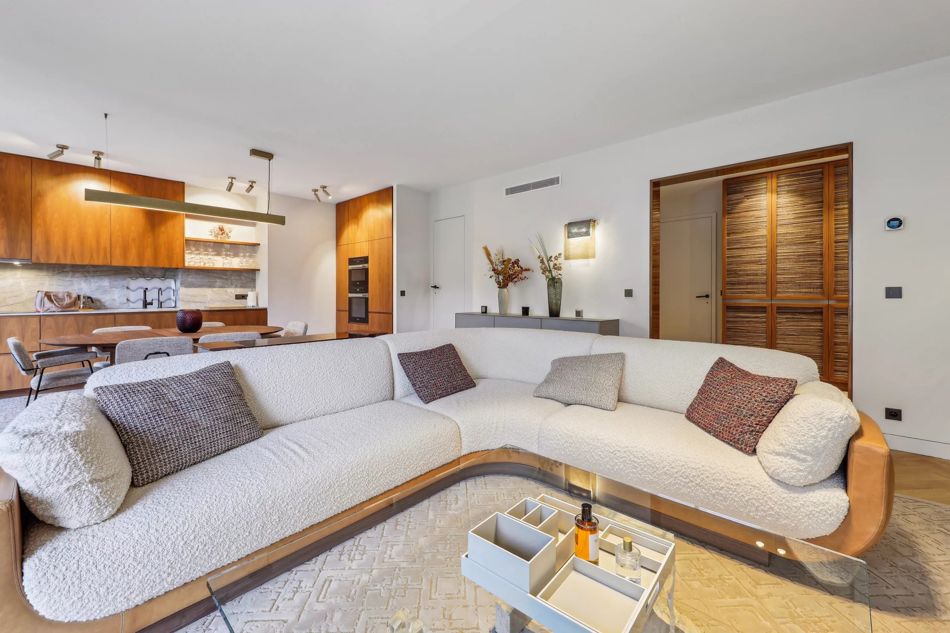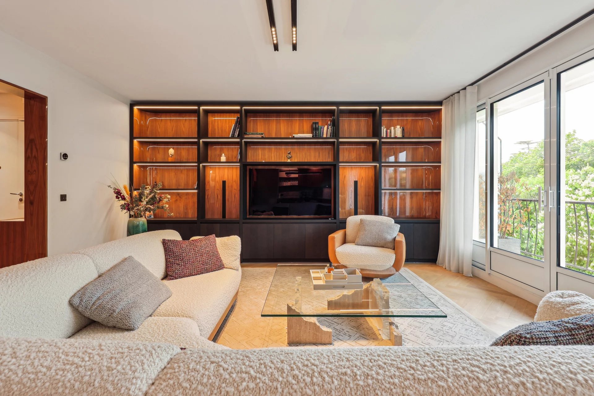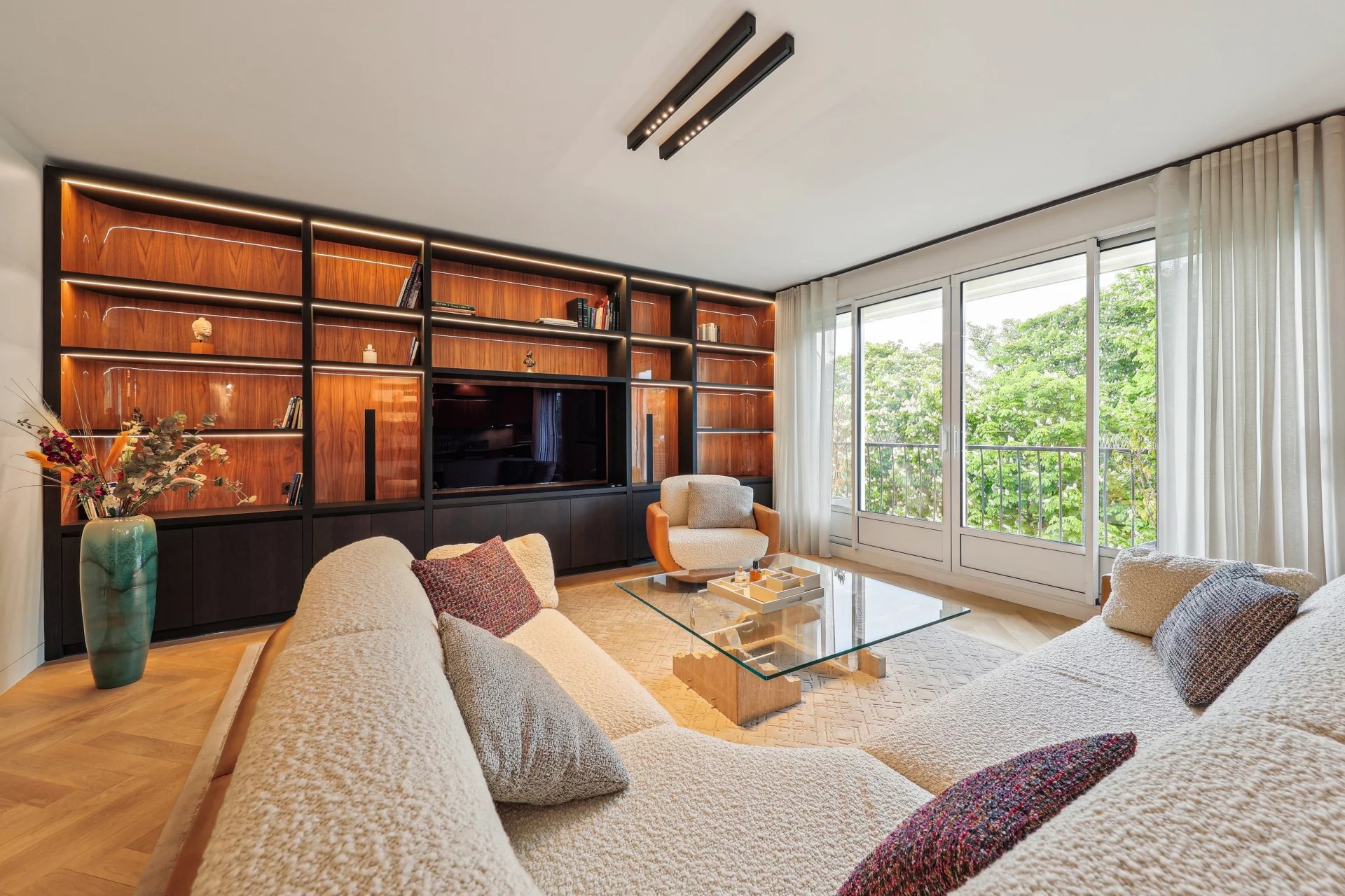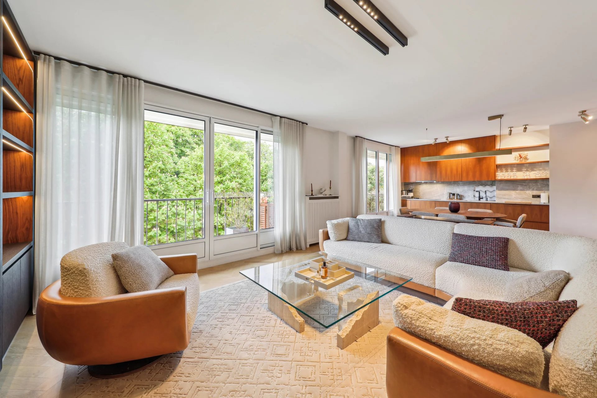 Facing the Bois de Boulogne, the Vaneau group offers you a 103.41(carrez) apartment with an optimized floor plan and recent, contemporary renovation. Located on the 3rd floor of a recent, guarded building, the apartment comprises an entrance hall, a 48 m² double reception room with two balconies and a breathtaking view of the Bois, and an open kitchen featuring top-of-the-range materials. The sleeping area features two bedrooms, each with its own bathroom or shower and toilet, dressing room, guest toilet, laundry room and plenty of storage space. The basement has a cellar and parking space.