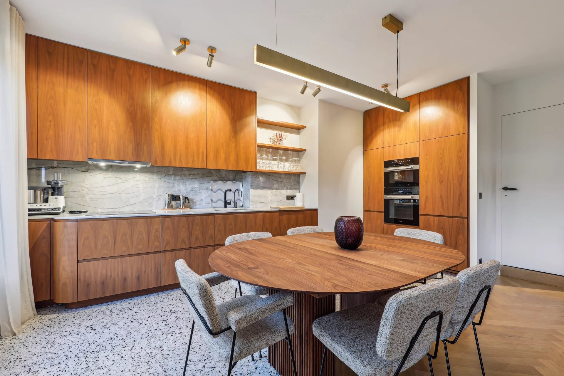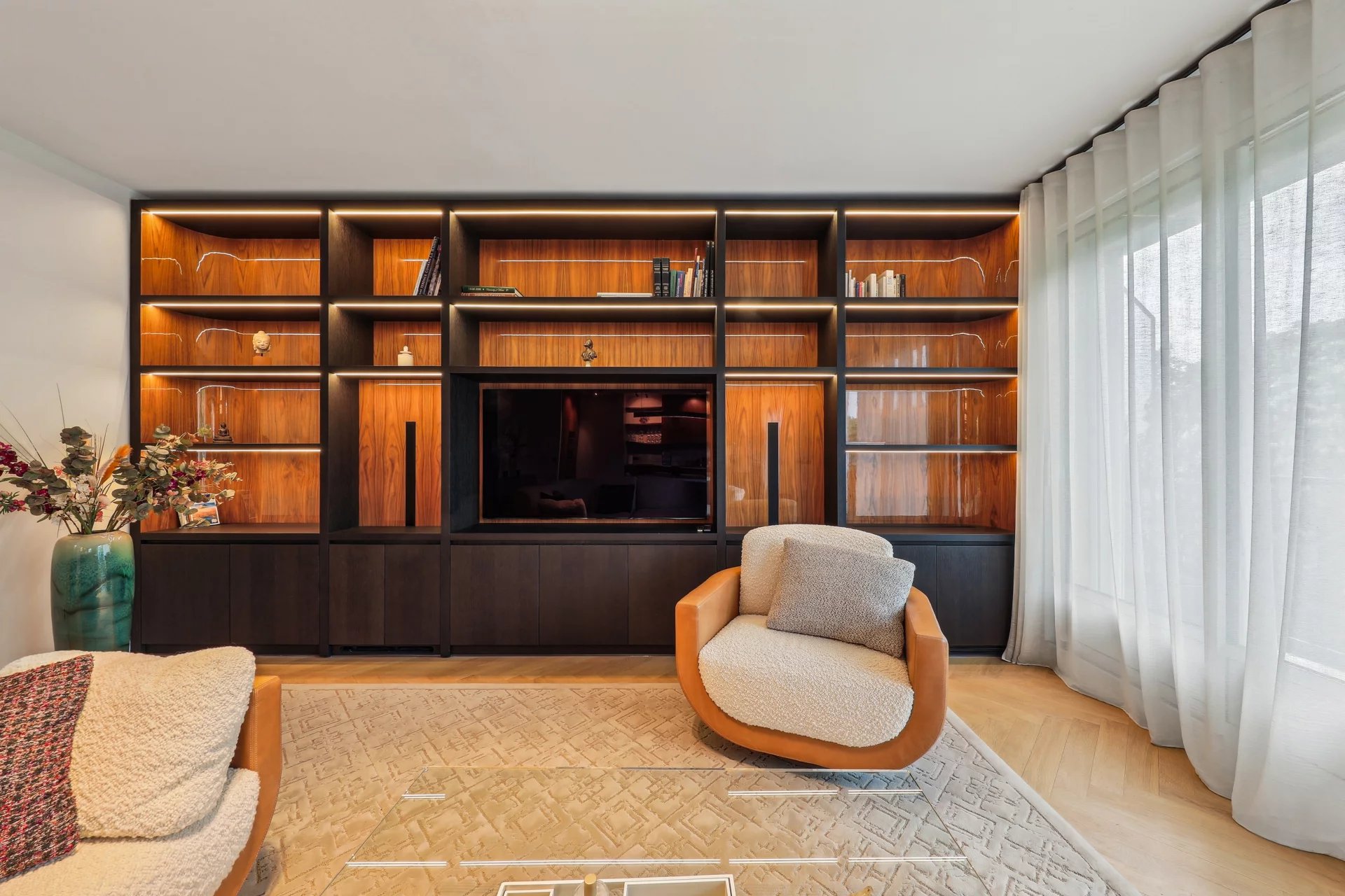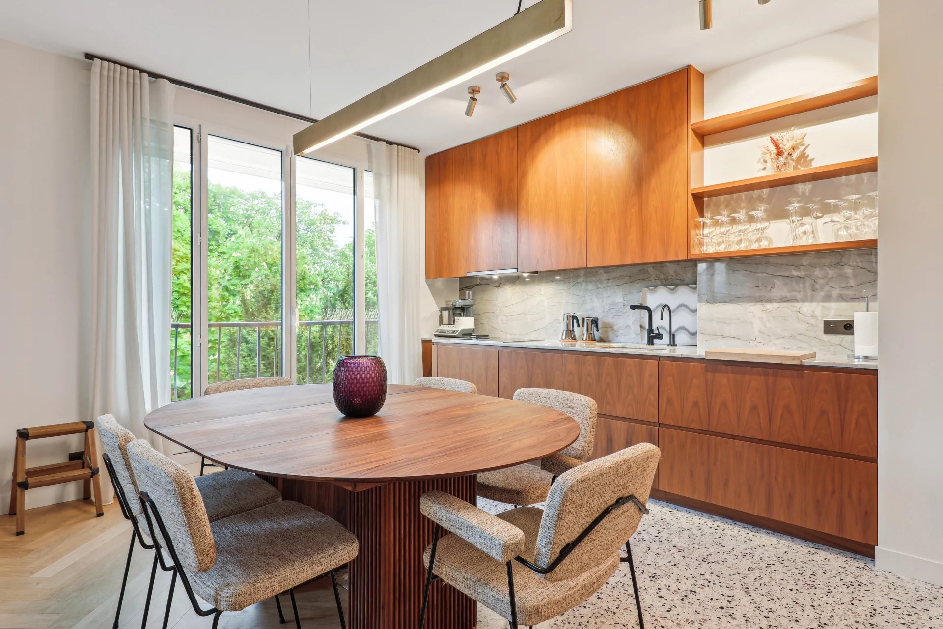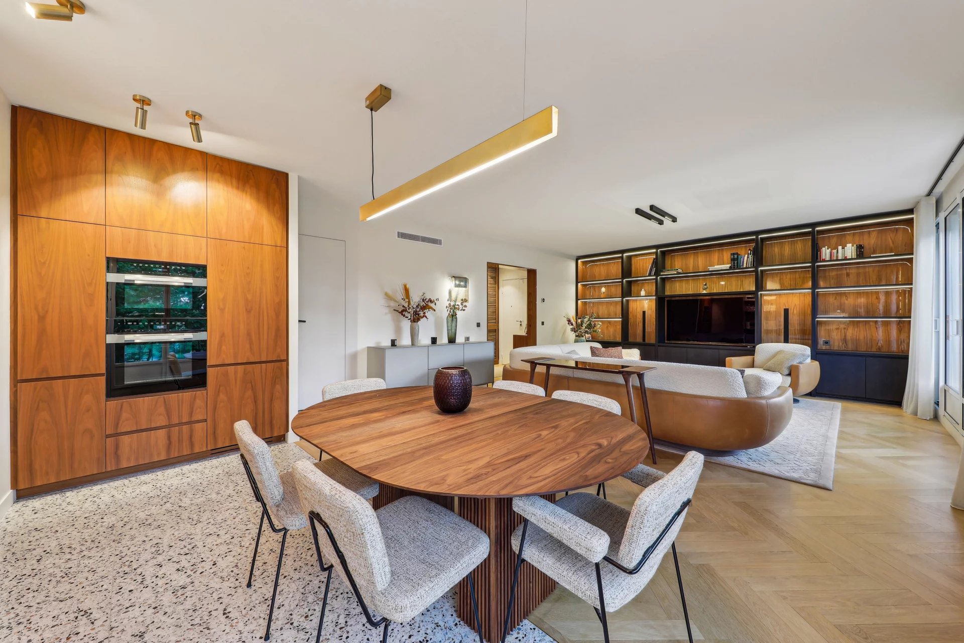 Facing the Bois de Boulogne, the Vaneau group offers you a 103.41(carrez) apartment with an optimized floor plan and recent, contemporary renovation. Located on the 3rd floor of a recent, guarded building, the apartment comprises an entrance hall, a 48 m² double reception room with two balconies and a breathtaking view of the Bois, and an open kitchen featuring top-of-the-range materials. The sleeping area features two bedrooms, each with its own bathroom or shower and toilet, dressing room, guest toilet, laundry room and plenty of storage space. The basement has a cellar and parking space.