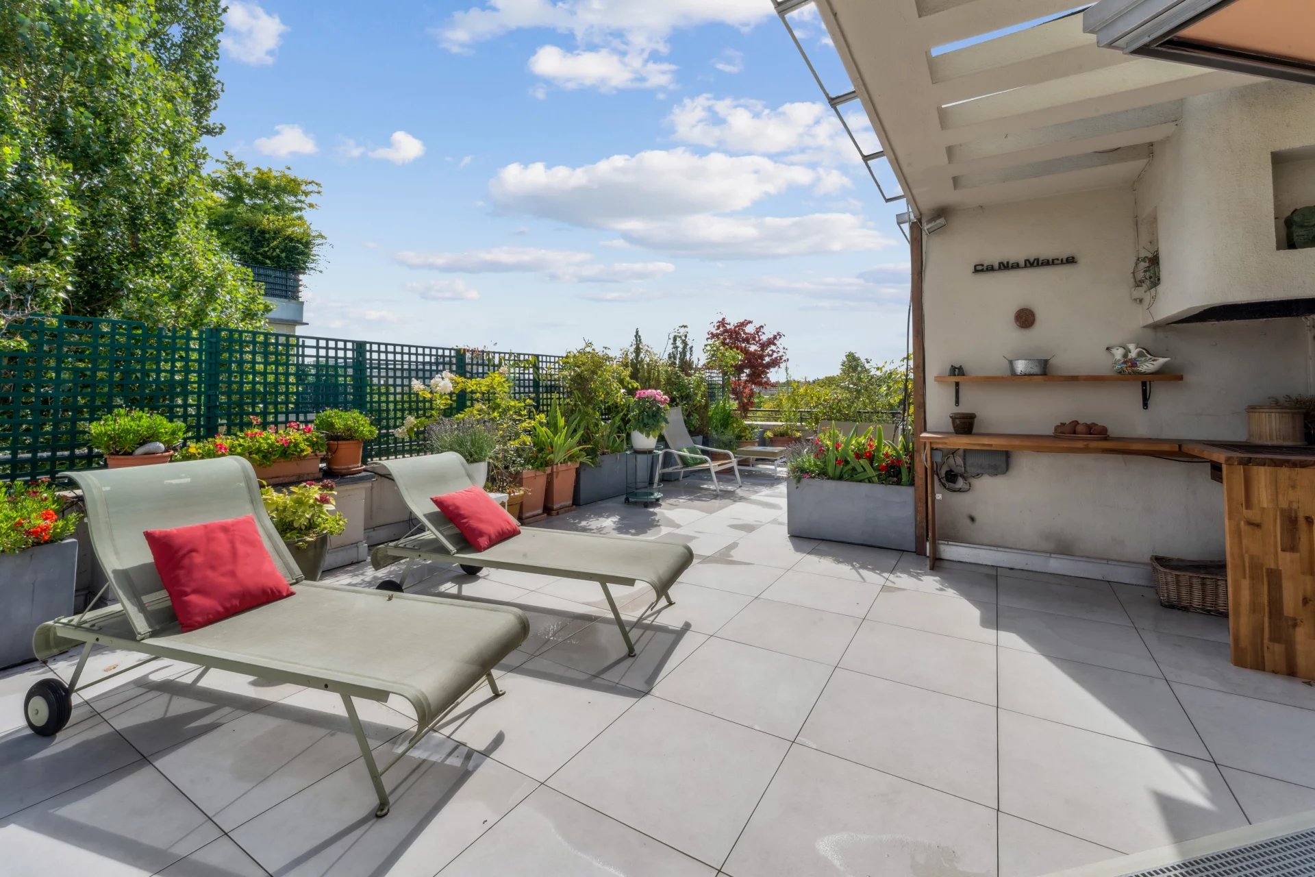The apartment's highlight is its expansive terrace, perfect for enjoying the serene views and lush greenery. Inside, elegant design and natural light create a warm, inviting atmosphere. The living area opens up to the terrace, seamlessly blending indoor and outdoor spaces, perfect for entertaining guests or enjoying peaceful evenings with family.