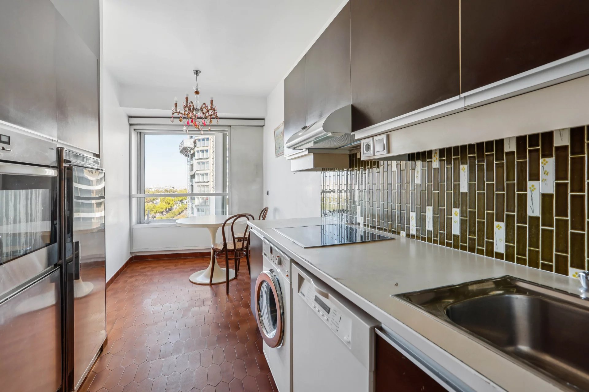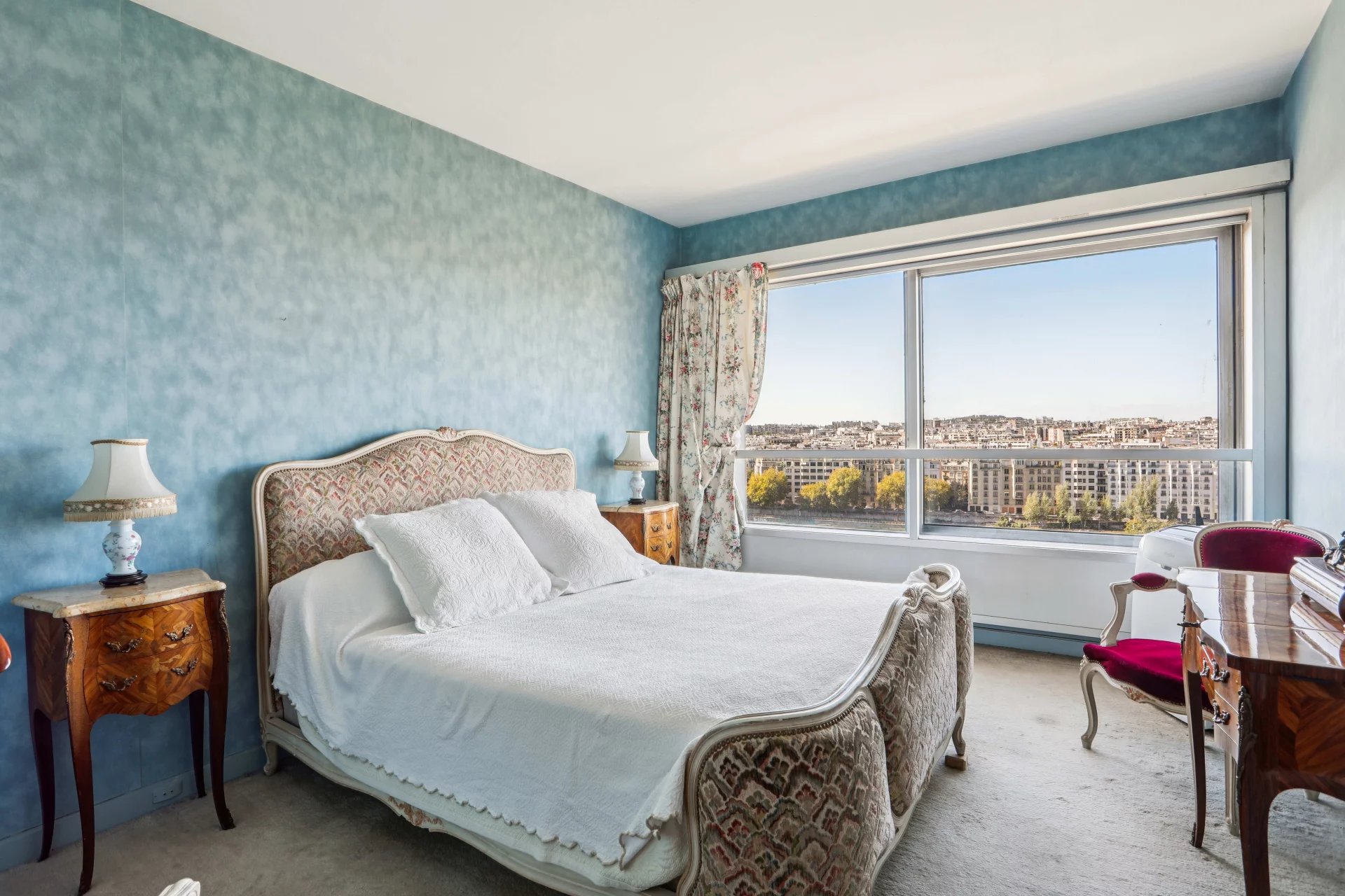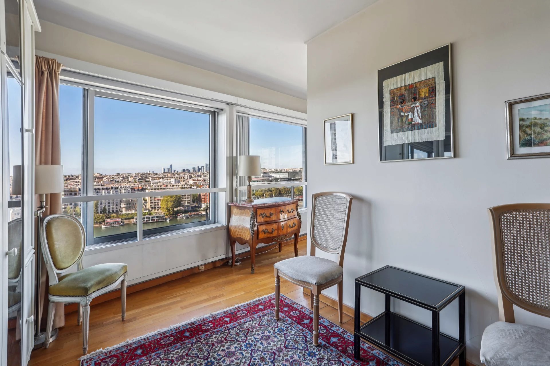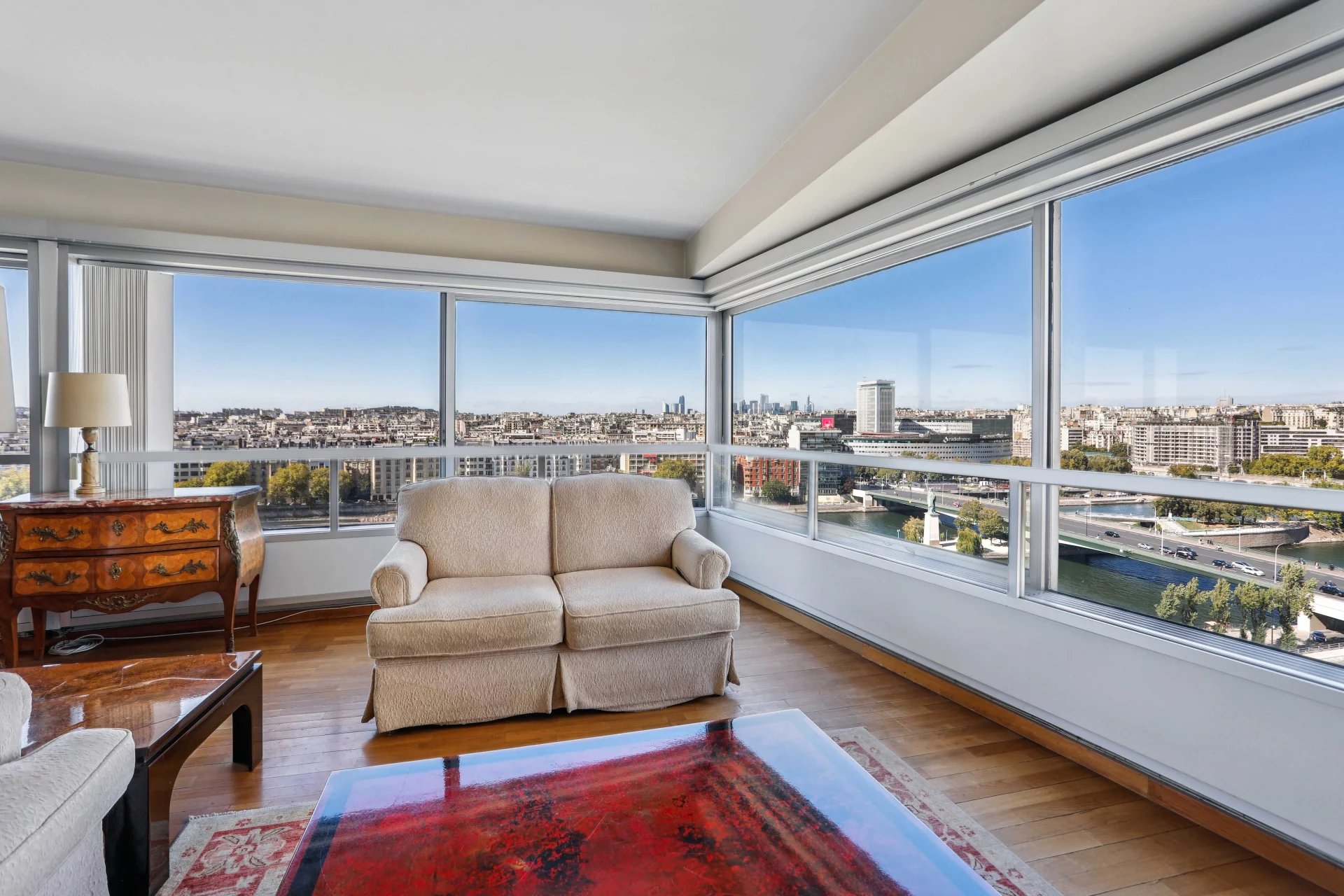 Groupe Vaneau presents a four-room apartment in a high-rise building near Beaugrenelle, with a magnificent, sweeping view of the Seine and the Eiffel Tower. It comprises an entrance hall, a 34 m2 living-dining room bathed in light thanks to corner bay windows, a separate kitchen (US possible), two bedrooms, bathroom with toilet, shower room with toilet. Plenty of storage space. A cellar and a parking concession complete this property. DPE D. Surface area of 95.46 m2 loi Carrez. Disabled access.