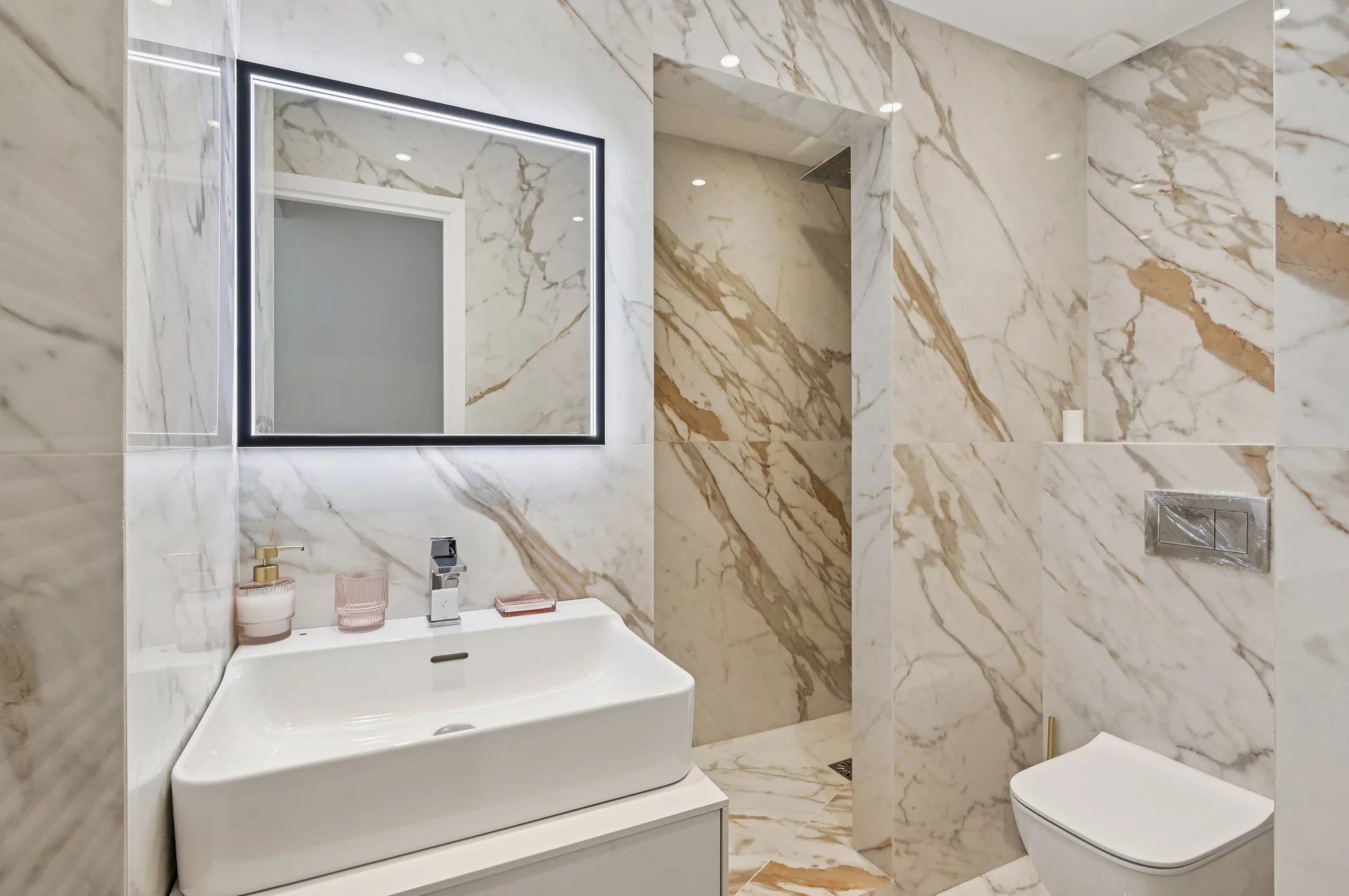 Convenience and security are assured with an elevator and intercom system, providing easy access and peace of mind. The open-plan living area is ideal for entertaining, featuring sleek finishes and ample natural light streaming through large windows. The kitchen is seamlessly integrated, offering both style and functionality.