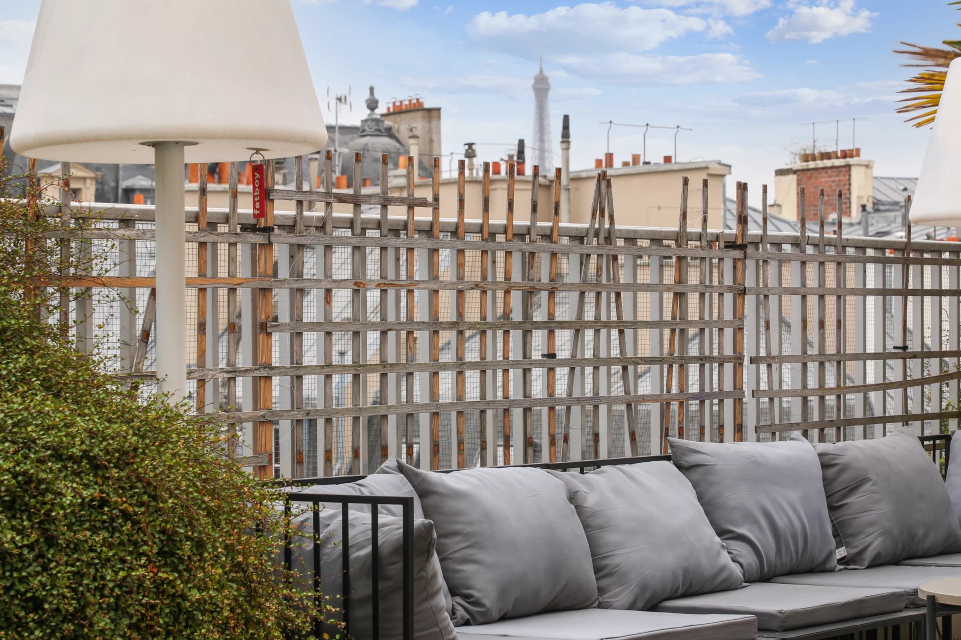 The Vaneau Group offers this wonderful apartment with a terrace on the 7th floor with elevator access in a recent building just a stone's throw from Parc Monceau.