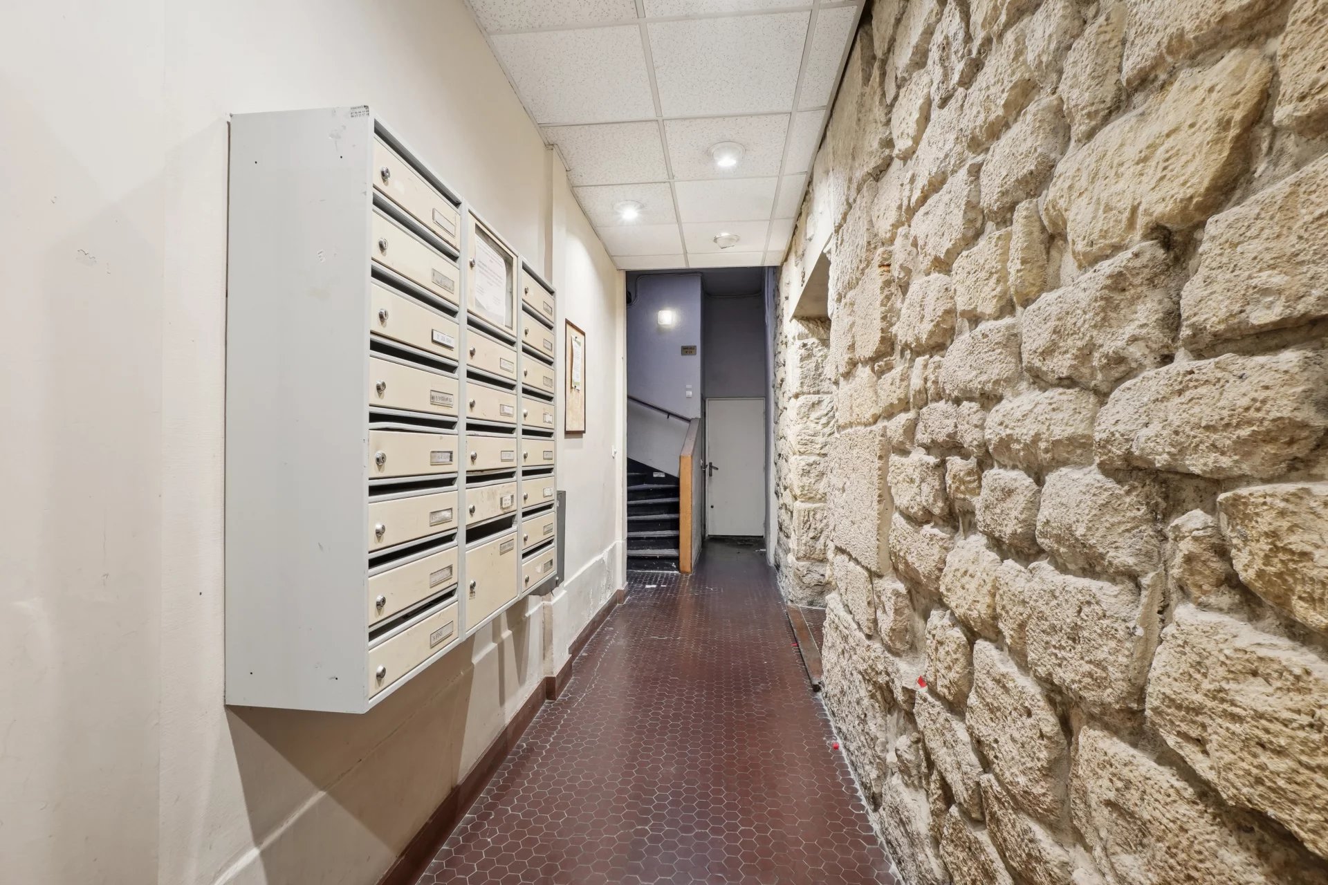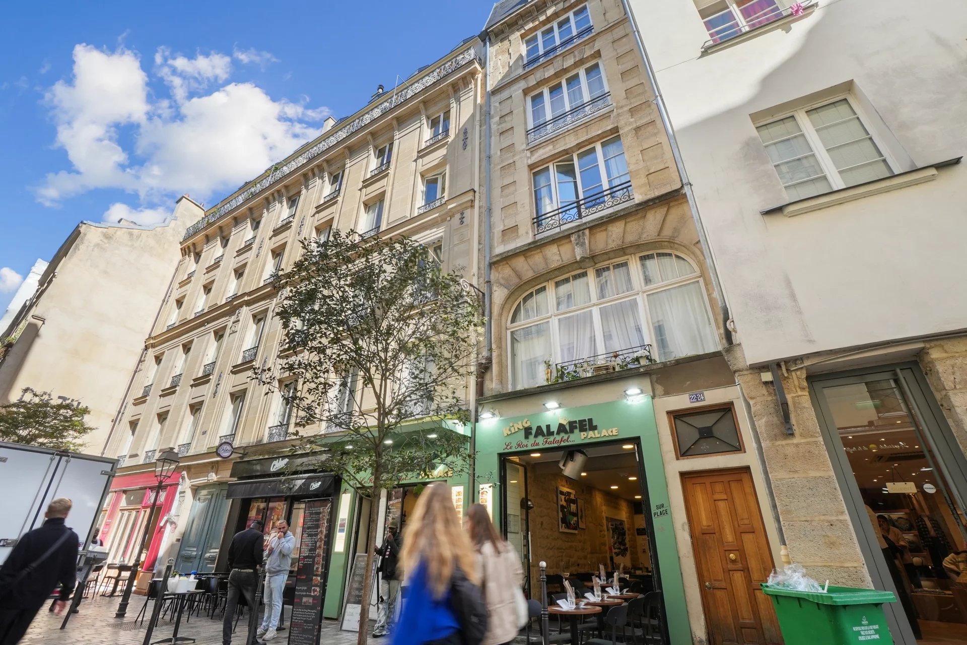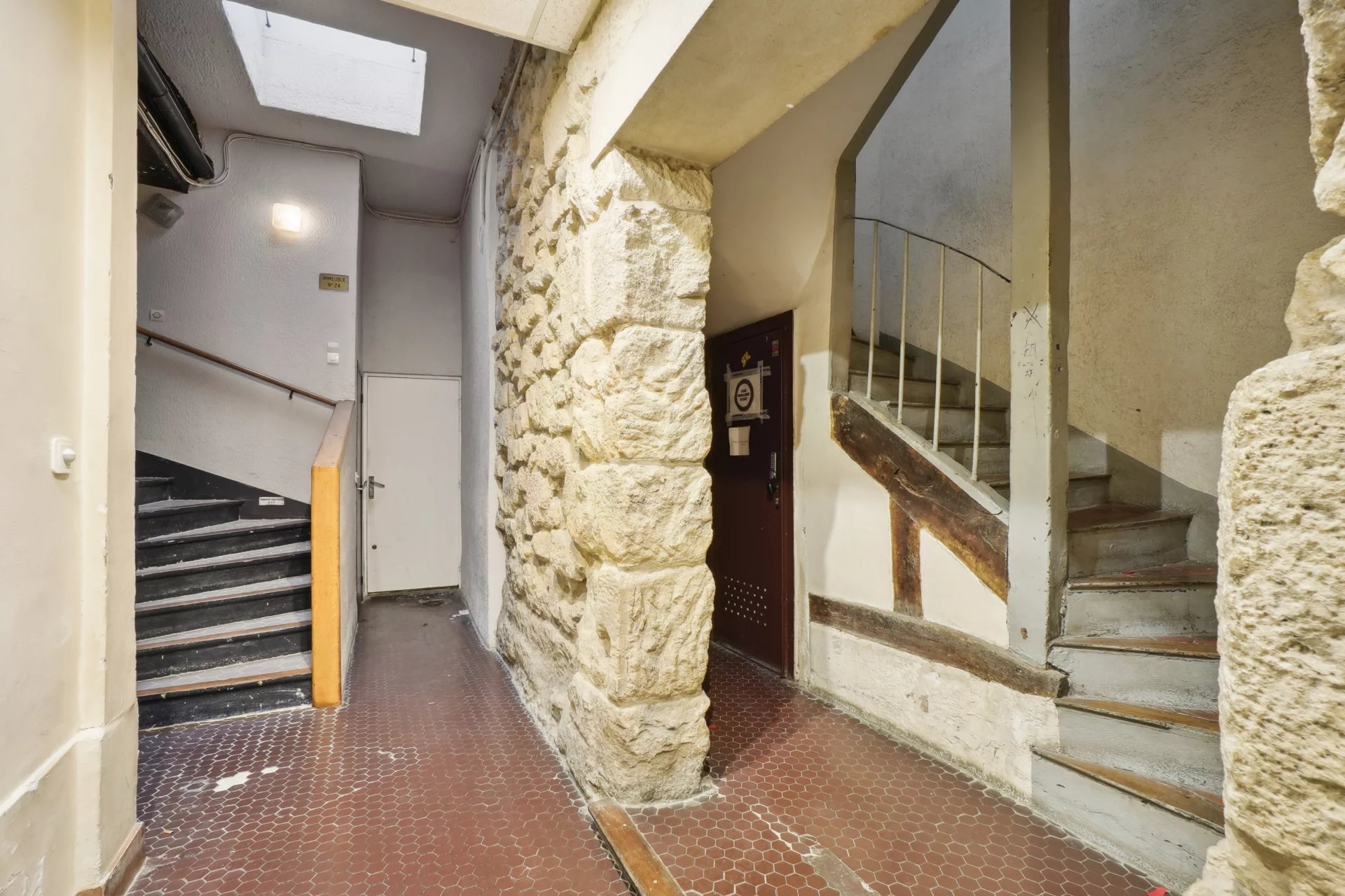 In the heart of the historic Marais district, on rue des Rosiers, in an old building dating from the mid-17th century, the group offers a charming studio with 2.90m² high ceilings and exposed beams. It comprises a living room with mezzanine, a kitchenette and a shower room with toilet. Quiet and bright, this property is in very good condition.