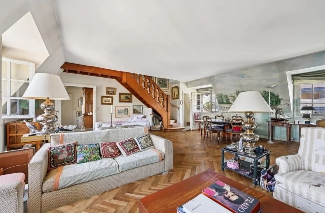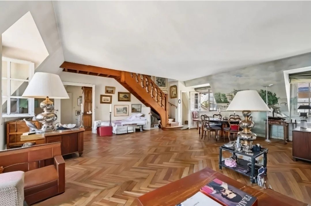 PARIS V - RARE - View of the Seine, Monuments, Islands, and beyond, on the top floor with elevator of a magnificent renovated 17th-century building with a main courtyard, caretaker, and historic building. A quiet, sunny duplex apartment with a spacious dual-aspect living room.