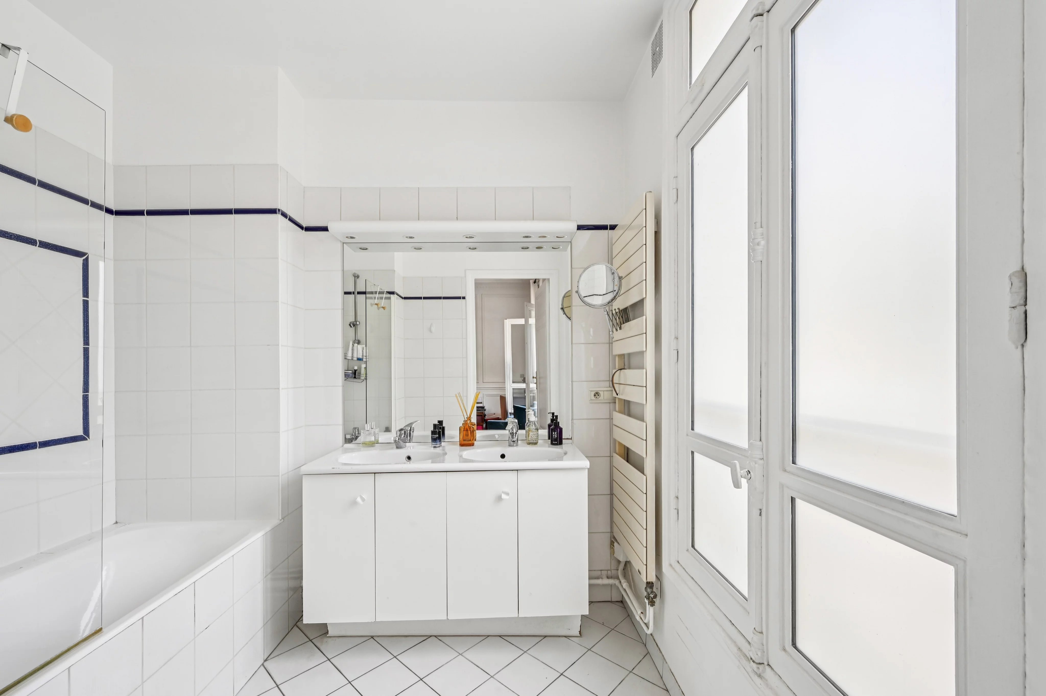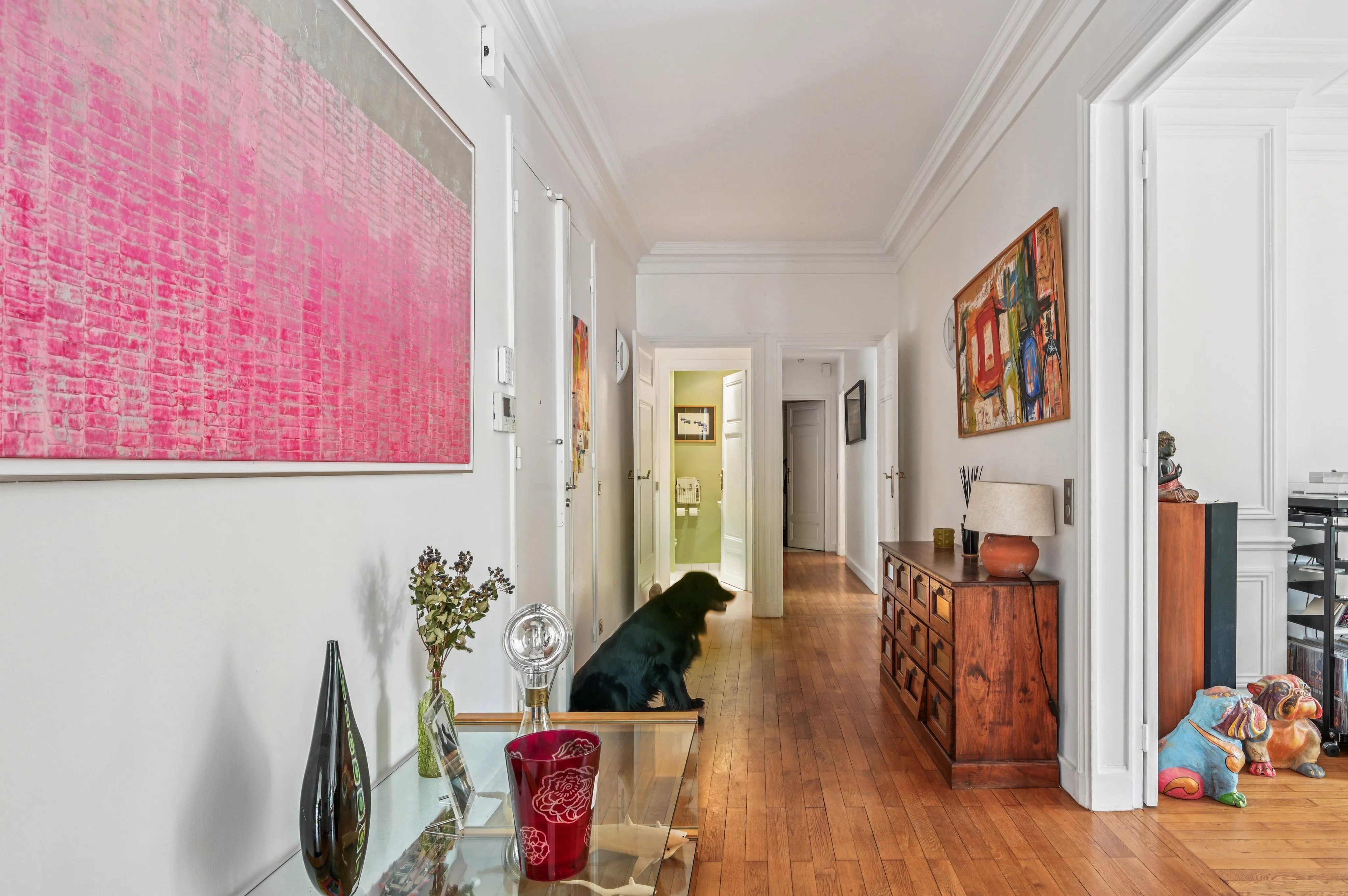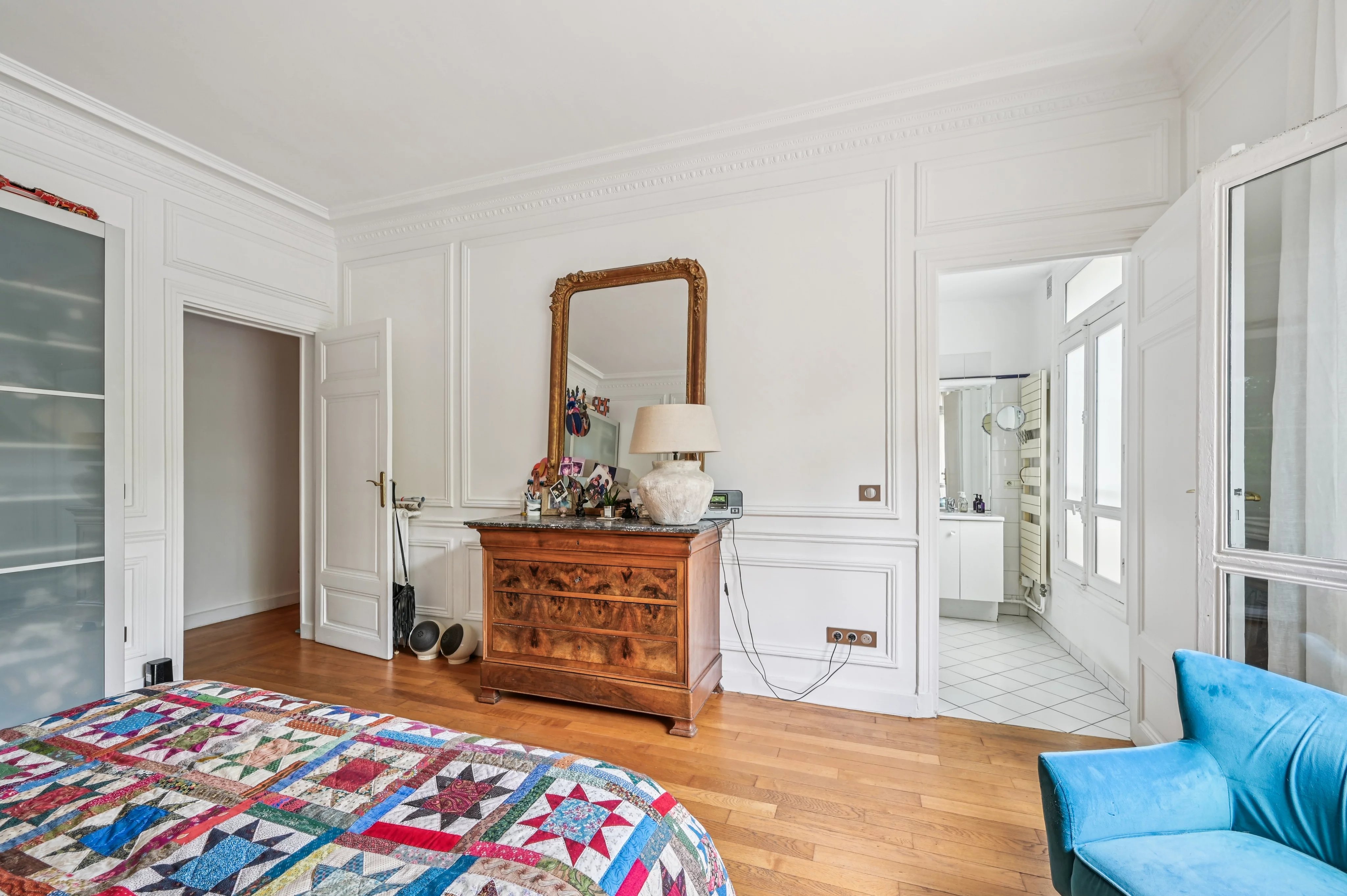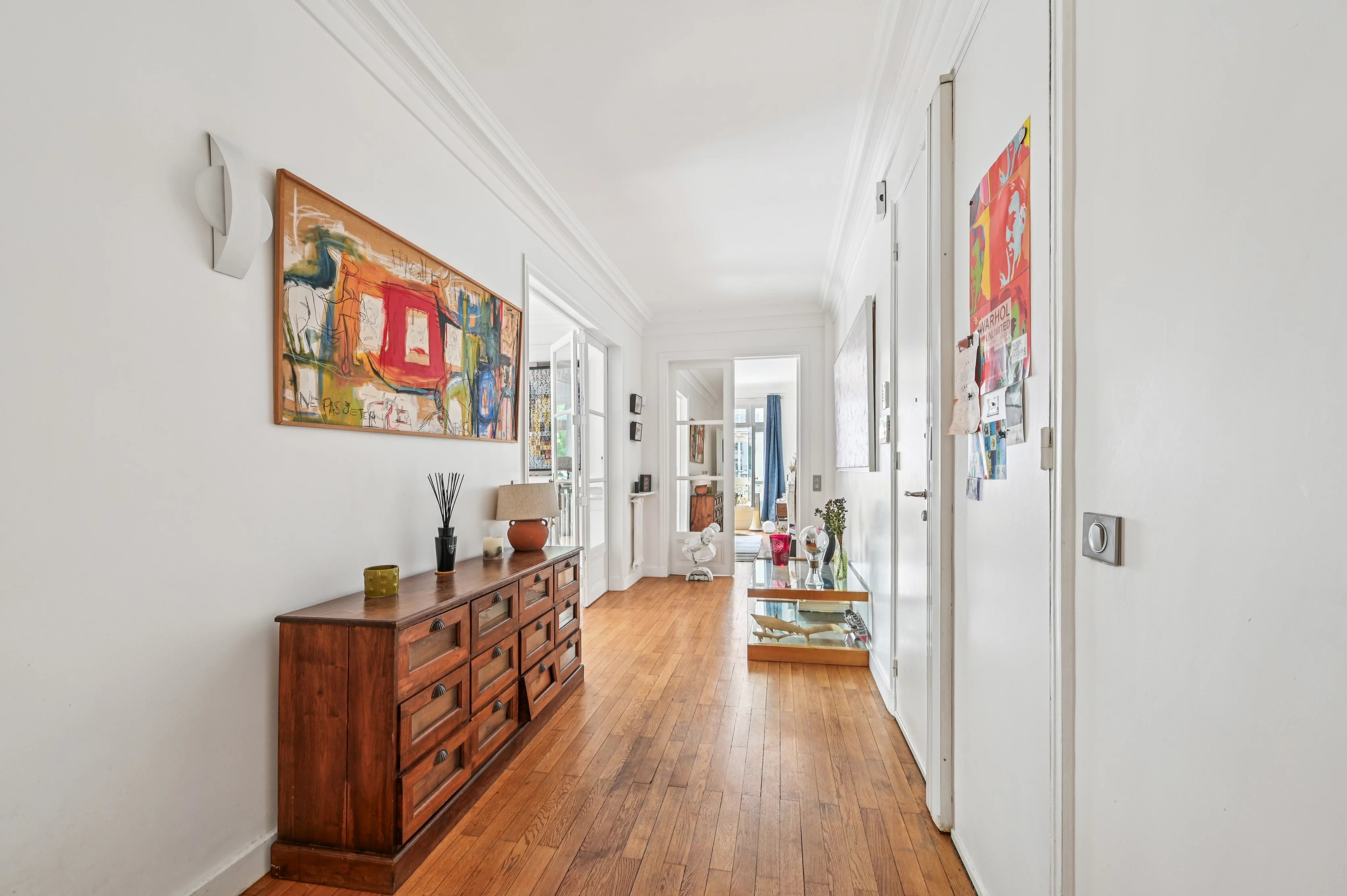 Located in a luxury building, on the second floor by elevator of a well-kept condominium with janitor, this 166 m2 Carrez apartment is composed as follows: entrance gallery, double corner reception room (possibility of a triple reception room), four bedrooms, including three bedrooms each with their own bathroom, independent kitchen-diner, dressing room, plenty of storage space and two independent WCs.