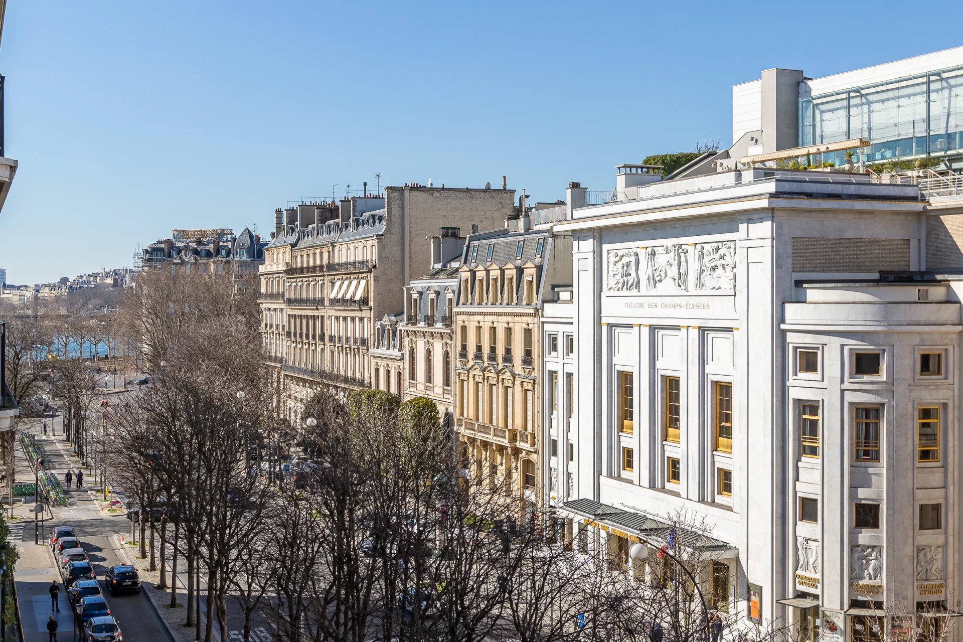 Paris 8 - Avenue Montaigne - In the heart of the Golden Triangle, on the 5th floor with elevator of a luxury 1960 building with janitor and common areas in perfect condition, Groupe Vaneau offers you an apartment with a large 14 m² balcony. It comprises: an entrance hall, a dining room, a vast living room, an independent fitted kitchen, four bedrooms with dressing rooms, two bathrooms and an independent shower room and toilet. Fully air-conditioned. A parking space and a cellar complete this exceptional property.