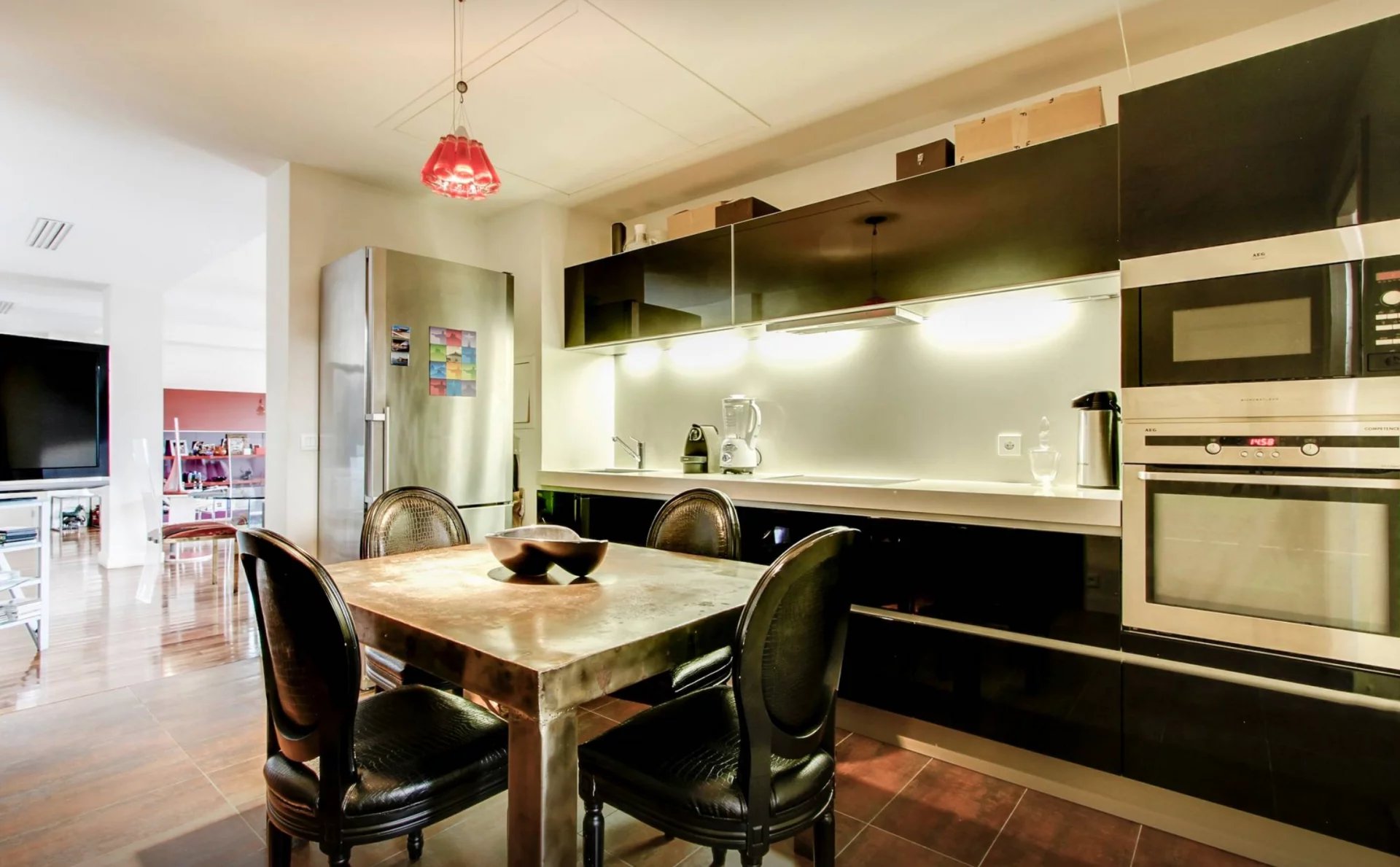 It comprises an entrance hall, a vast 61 m² living room opening onto a 36 m² terrace, a fully-equipped kitchen/dining room, a pantry with laundry room, and a large master suite also opening onto the terrace, with an elegant bathroom and dressing room. A second bedroom has its own shower room and amenities.