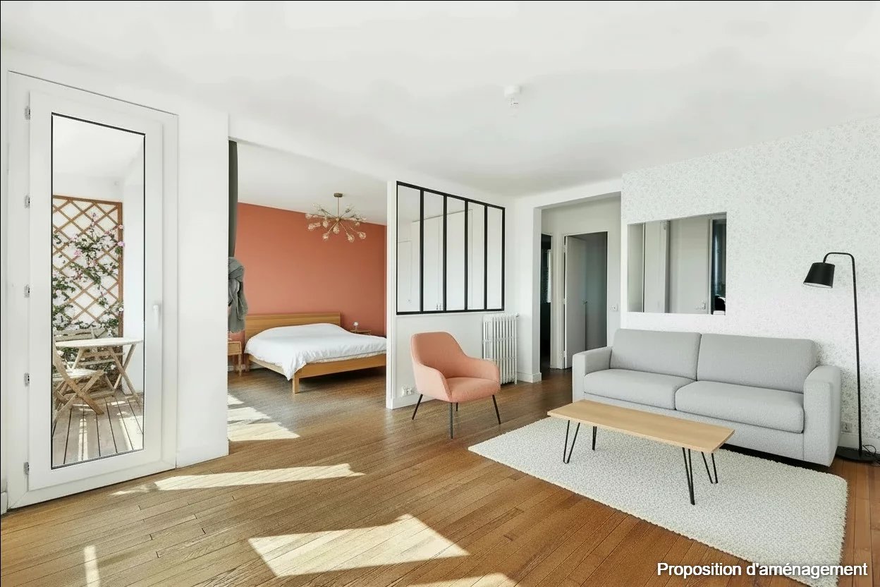 Rueil Malmaison - Rue des Folies, near the Arsenal eco-district and the future Rueil Suresnes Mont Valérien station (line 15). In a 1960 building without elevator, 55.94 m² Carrez apartment comprising an entrance hall, living room with 3 m2 balcony, two bedrooms, separate kitchen with pantry, bathroom and separate toilet.