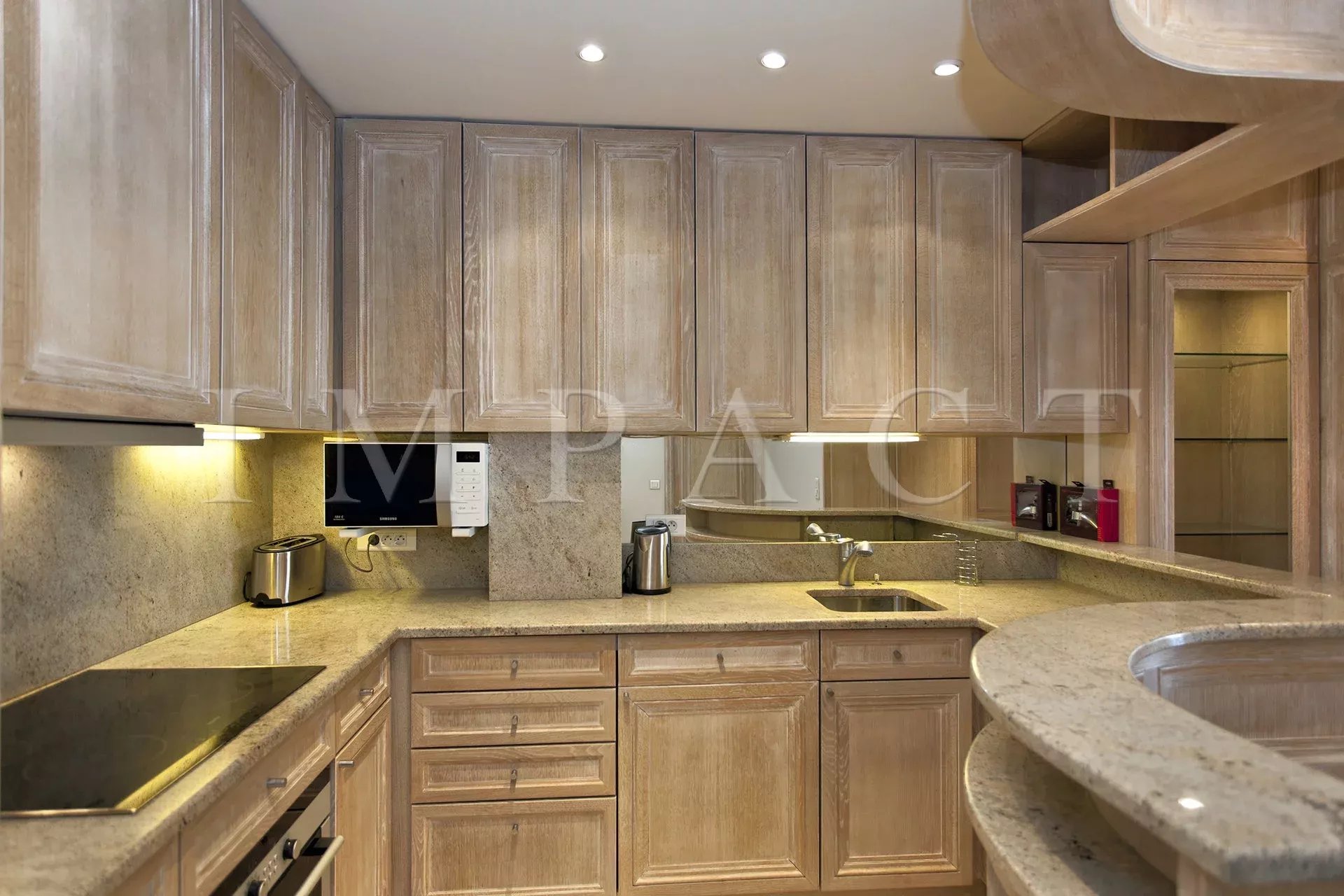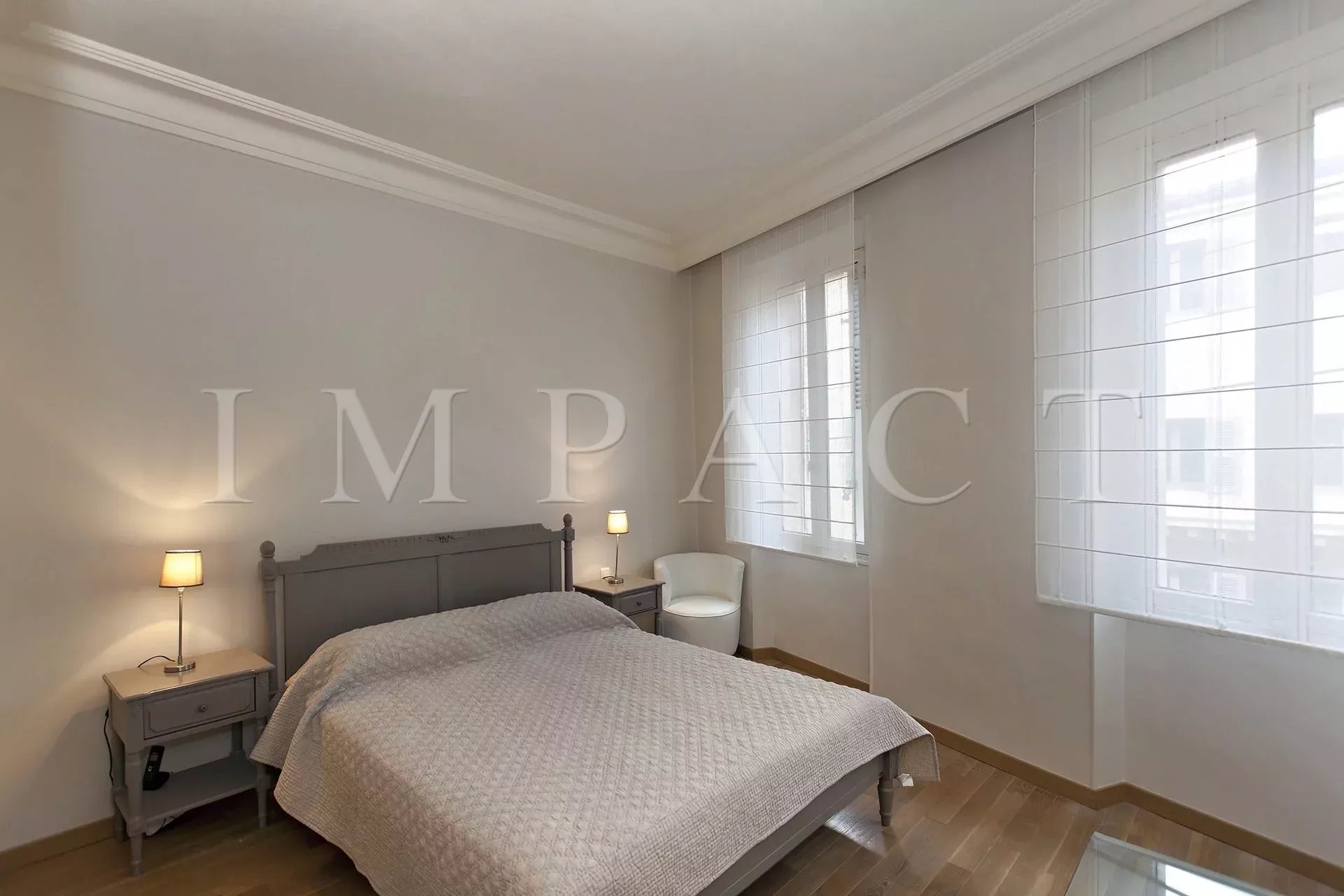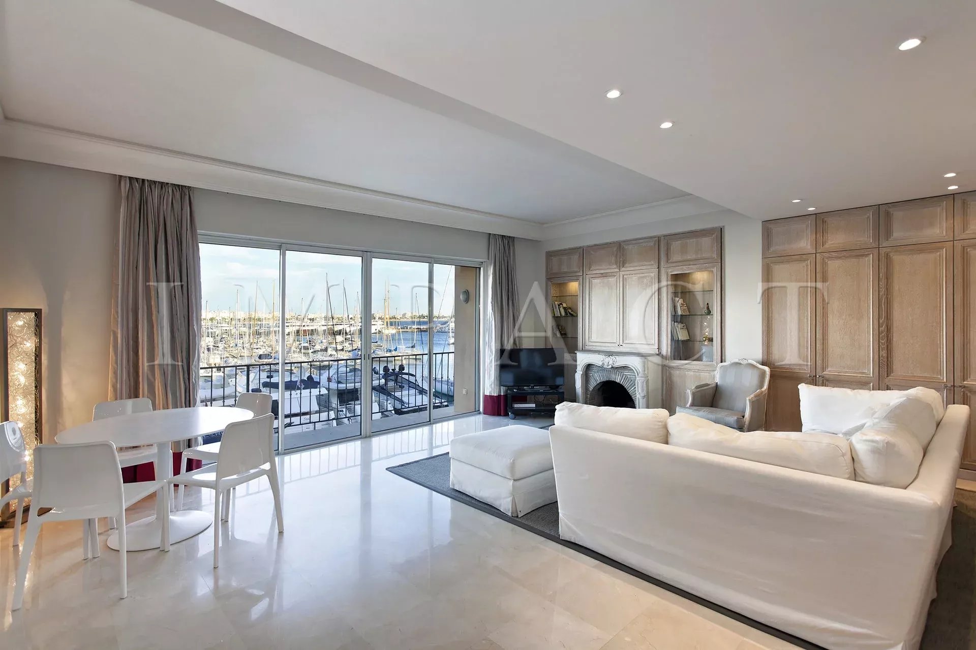 Crossing east/west, it enjoys exceptional light and a panoramic view over the harbor, the sea and the rooftops of Cannes.