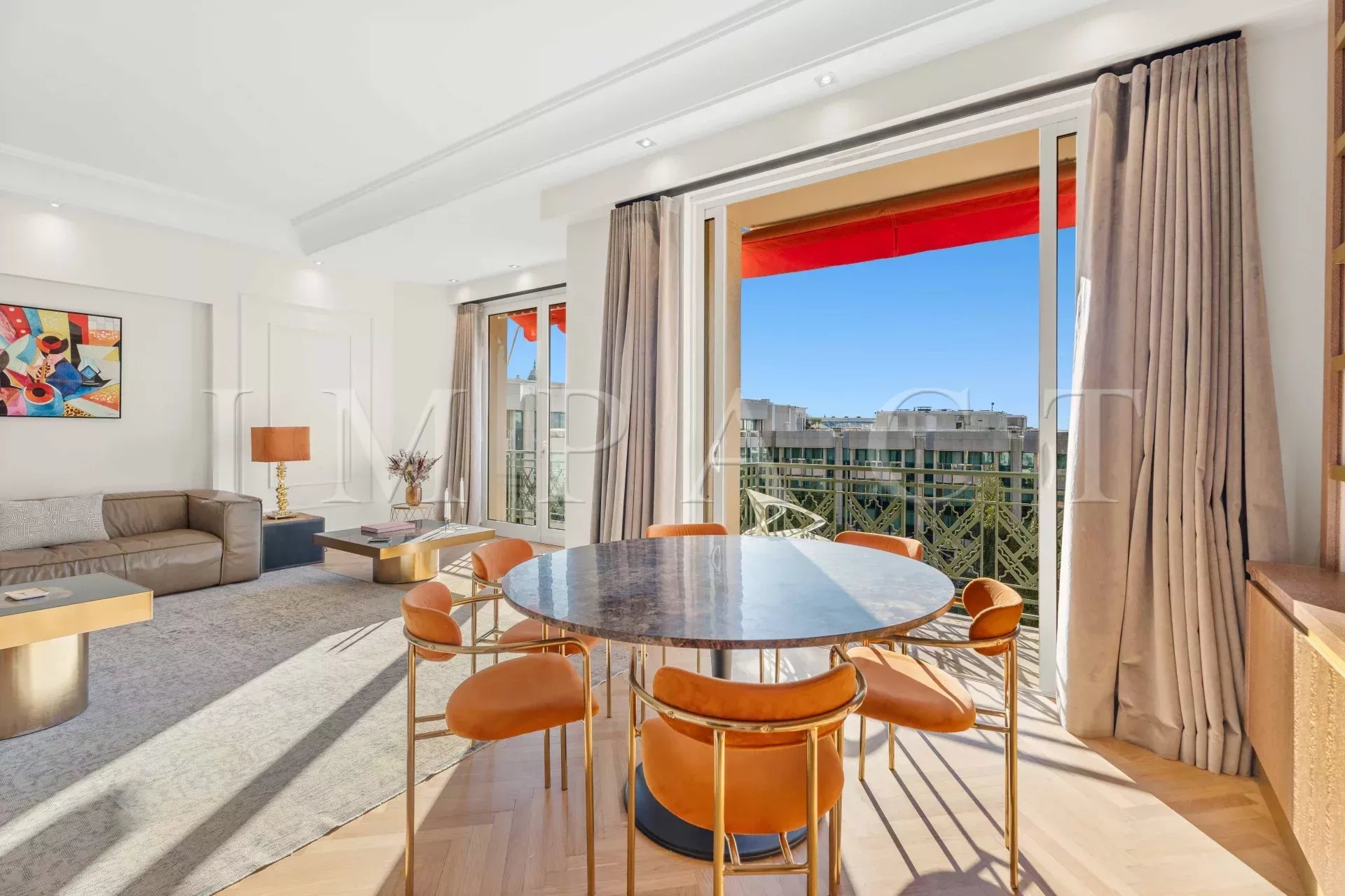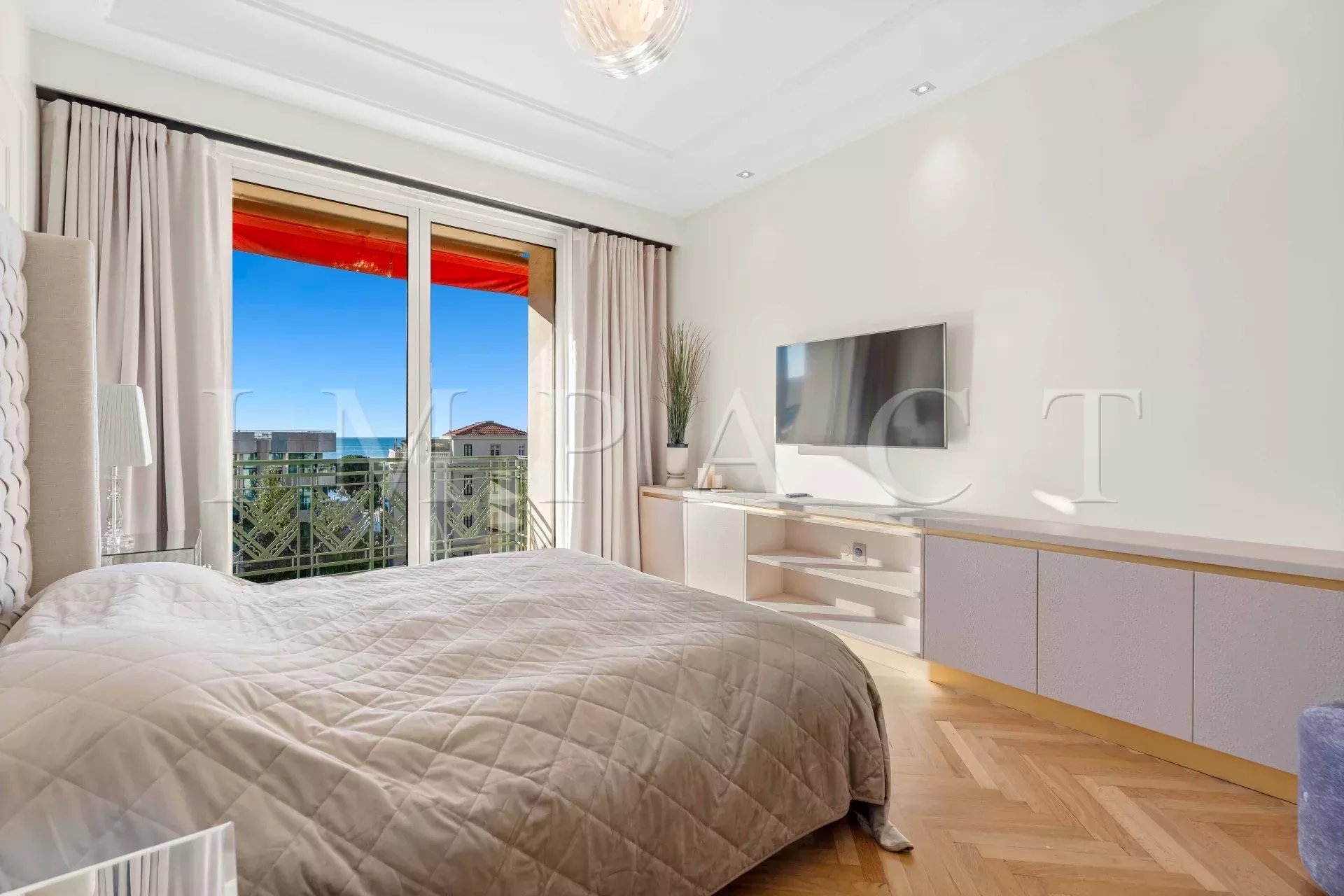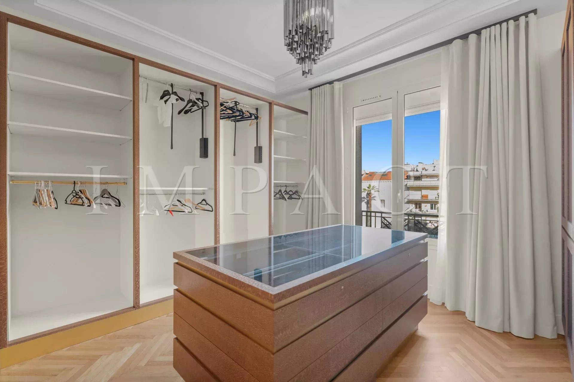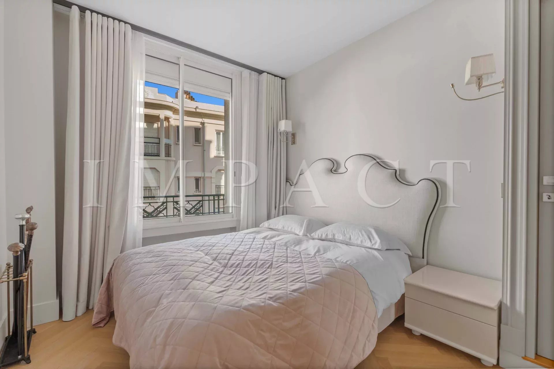 In the heart of Cannes, a stone's throw from the Croisette and close to the Marriott and Mondrian hotels, in a beautiful, secure, luxury Art Deco building with elevator, janitor and outdoor communal parking.