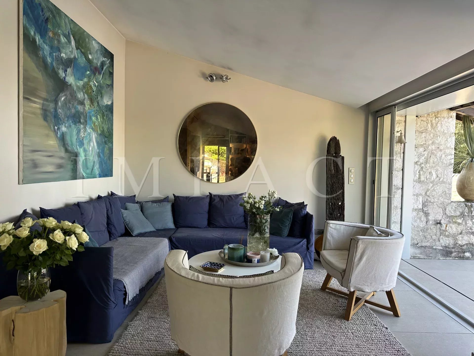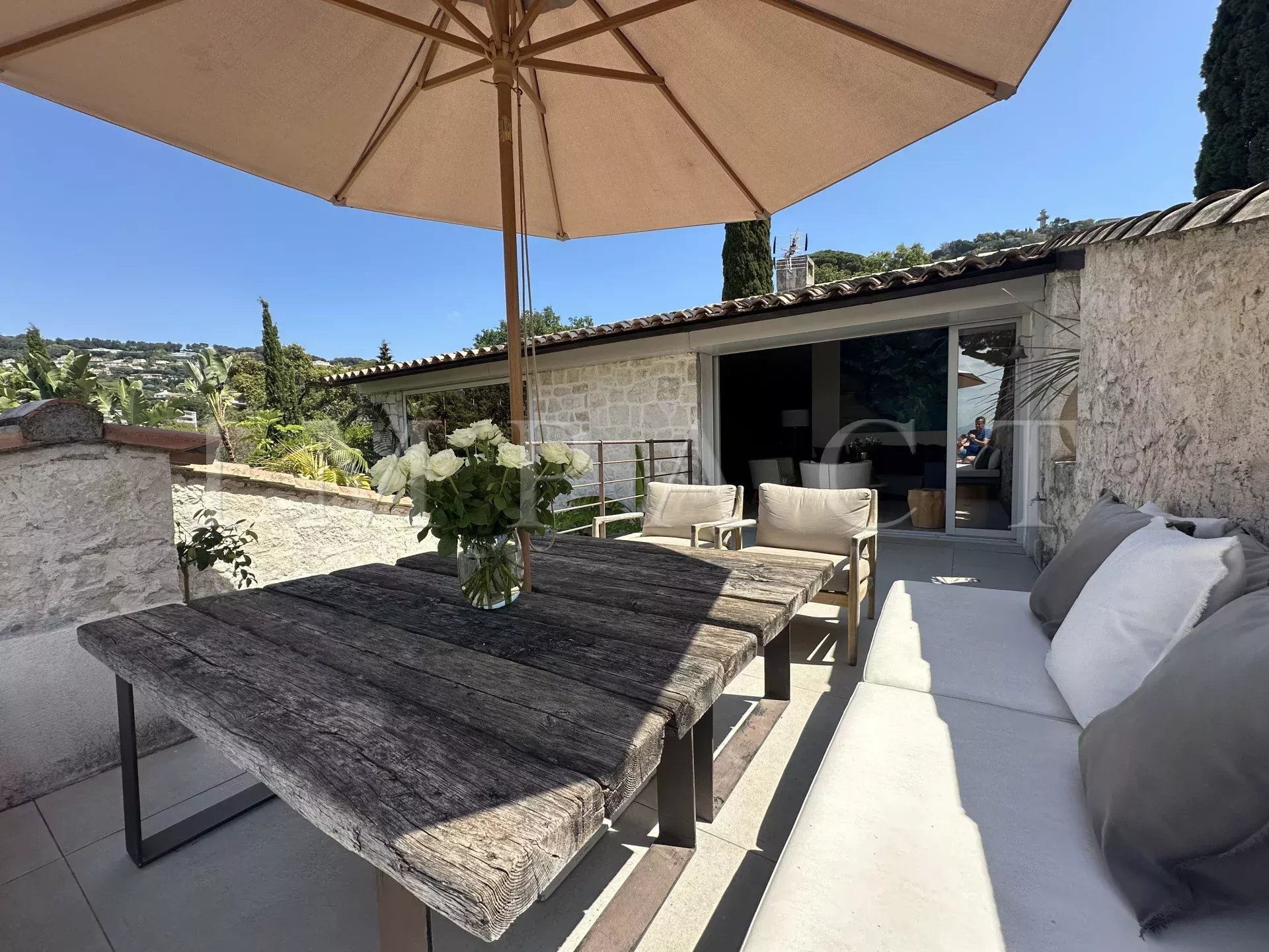 The exteriors are on a par with the rest of the house, with two terraces (22 m² and 10 m²), ideal for enjoying sunny days. The terraces are furnished with tables, sofas and a plancha for convivial moments with family and friends.