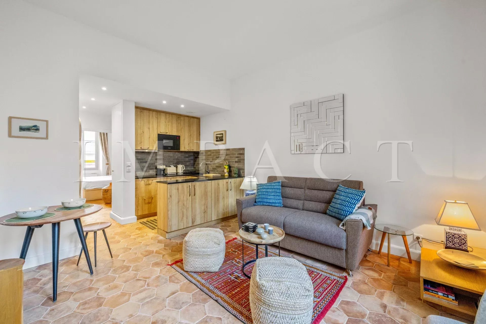 Situé juste derrière l’hôtel Mondrian, cet appartement est à proximité immédiate de la Croisette, de la rue d’Antibes et de tous les lieux attractifs de Cannes.