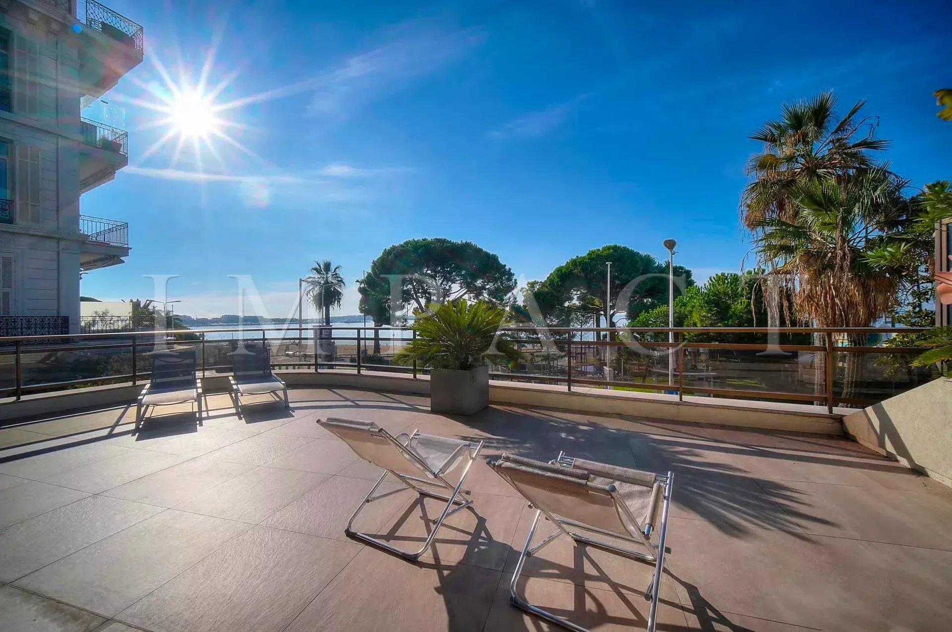 Dans une résidence de standing face à la mer, à 3 minutes à pied du Palais, sécurisée 24/24