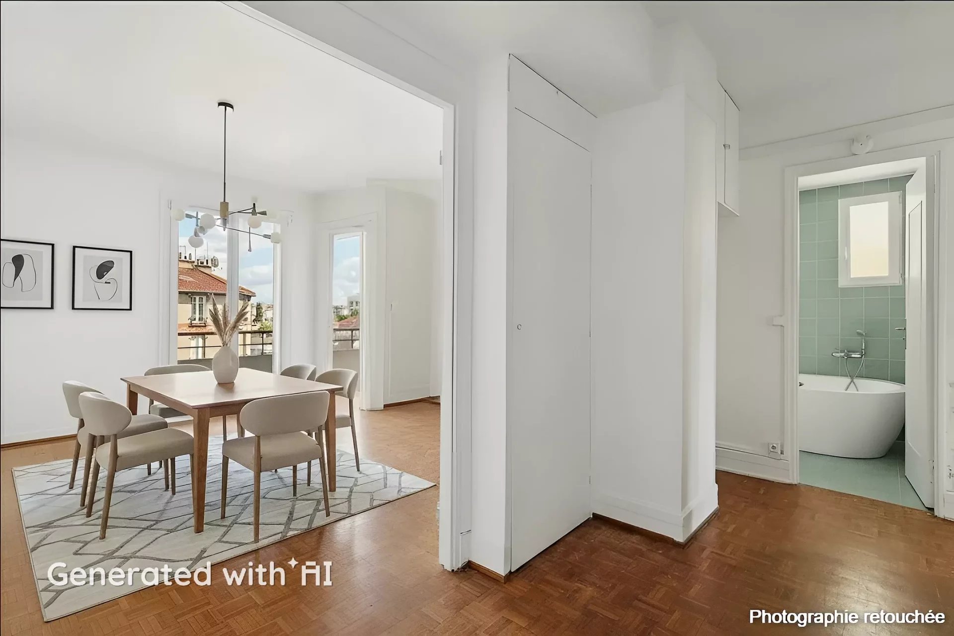 PLAN MODULABLE (une configuration "cuisine ouverte sur le séjour et 3 chambres sur cour" est réalisable).