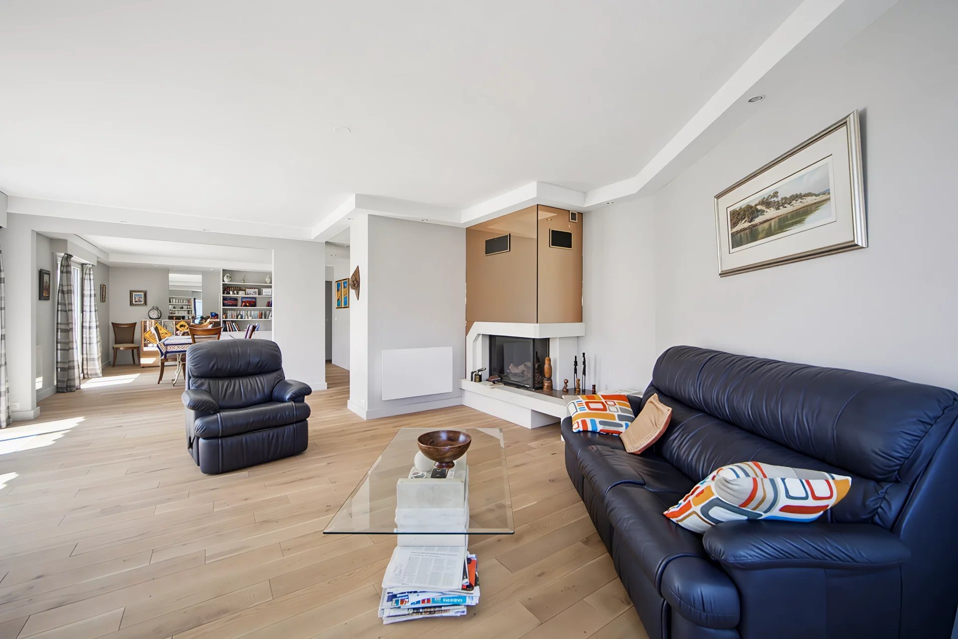 Situé aux deux derniers étages (6e et 7e) d’un immeuble récent, ce duplex de 159,83 m² Carrez offre de très beaux volumes et une belle luminosité. Il se compose, au premier niveau, d'une vaste pièce de vie (53m²) avec cheminée, ouverte sur une terrasse exposée ouest, d'une cuisine américaine aménagée et équipée, d'une chambre, d'une salle d’eau et de WC séparés.