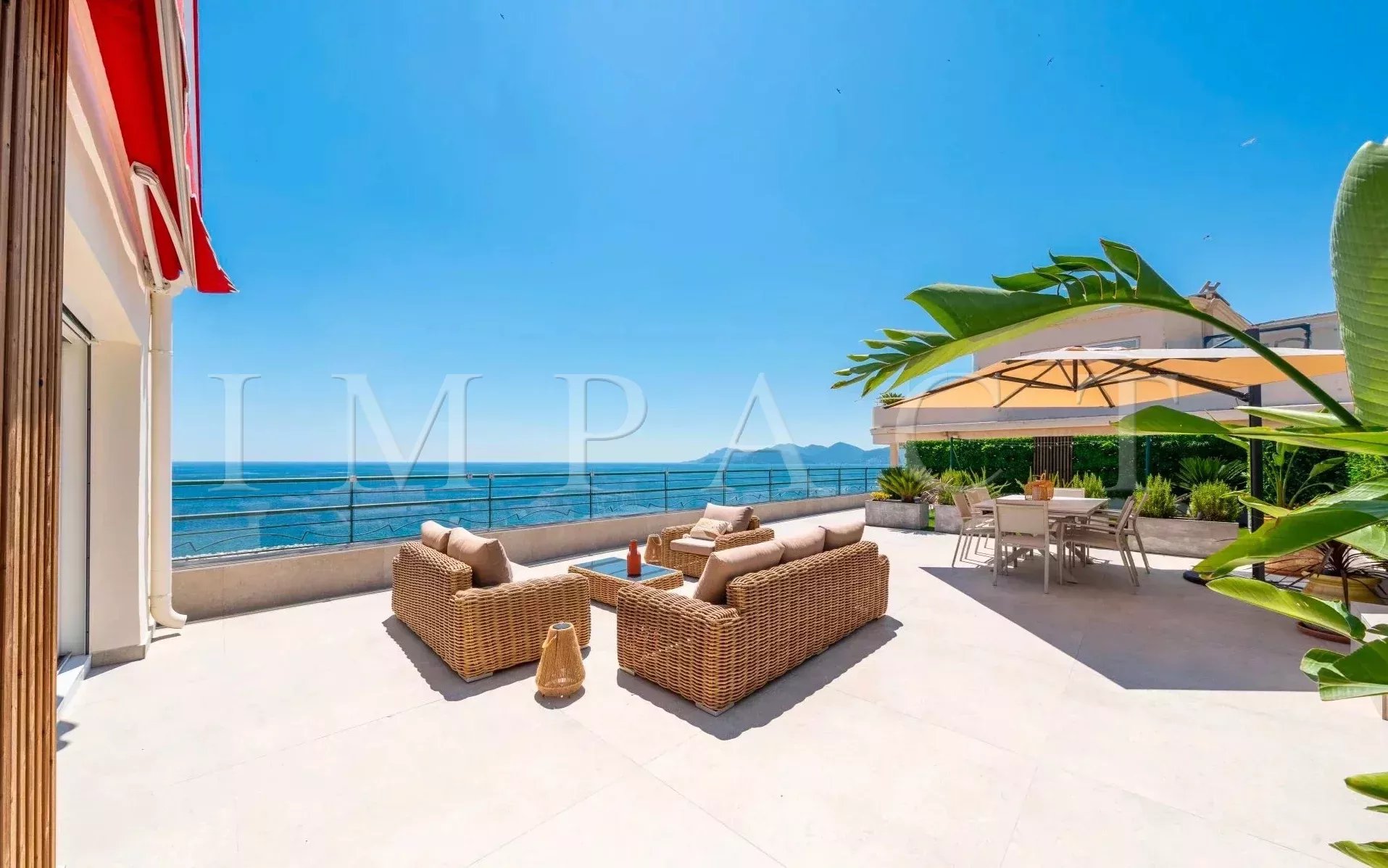 Magnifique penthouse de 4 pièces entièrement rénové avec des prestations de grande qualité bénéficiant d'une vue panoramique sur la mer, la ville de Cannes ainsi que les collines de l'Estérel.