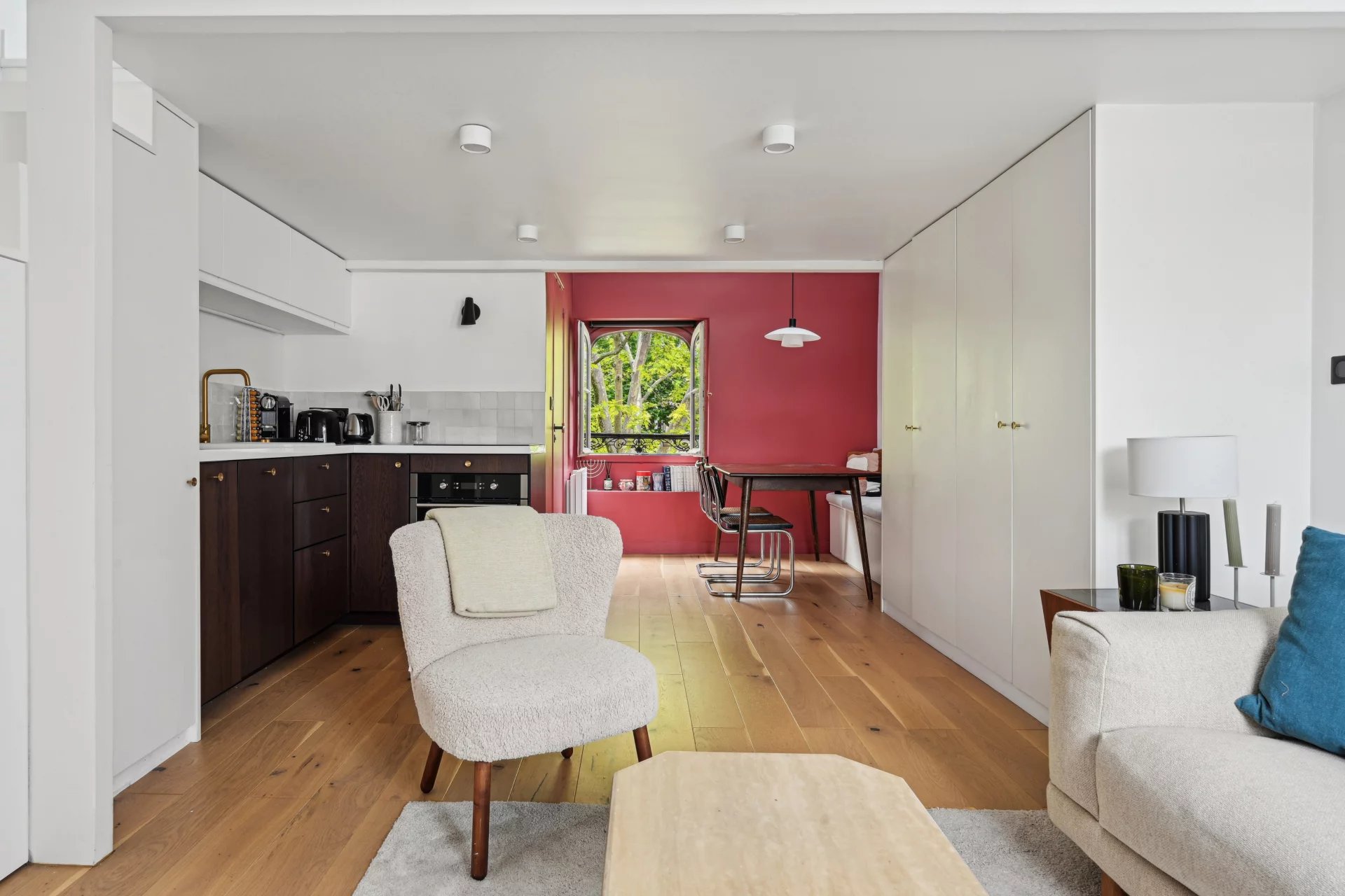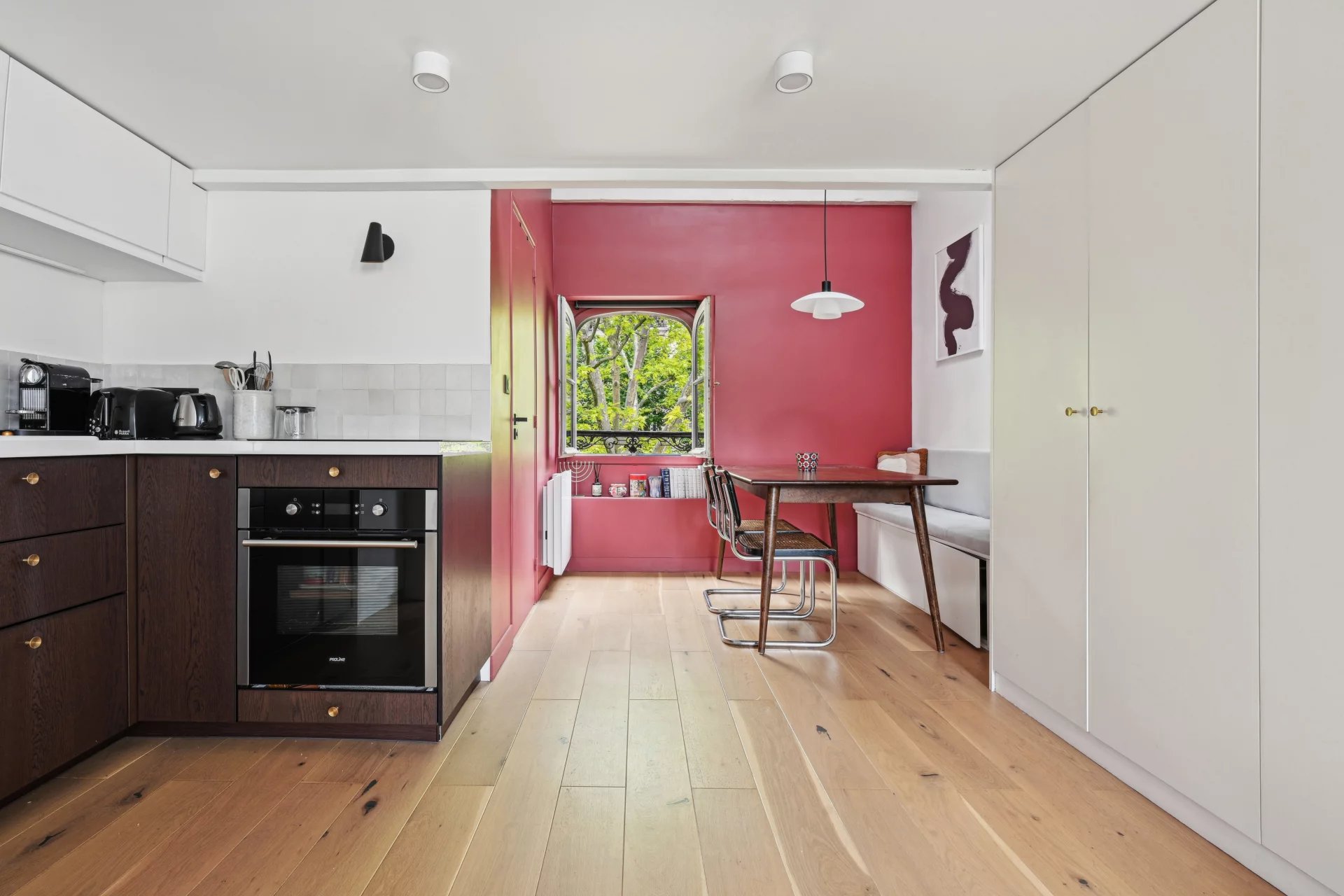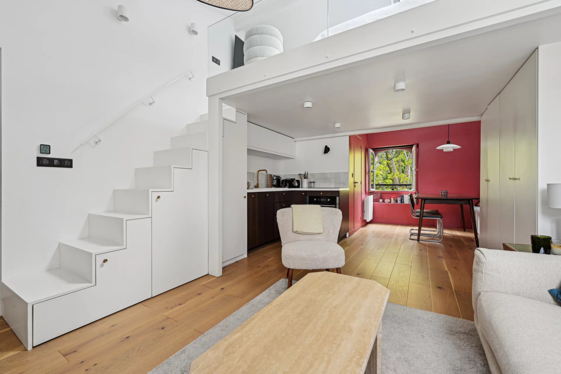 Rénové avec soin par un architecte, il se compose d’une entrée, d’un séjour lumineux avec coin salle à manger, d’une cuisine ouverte entièrement aménagée et équipée, d’une chambre en mezzanine, d’une salle de douche, de toilettes, et de nombreux rangements sur mesure.