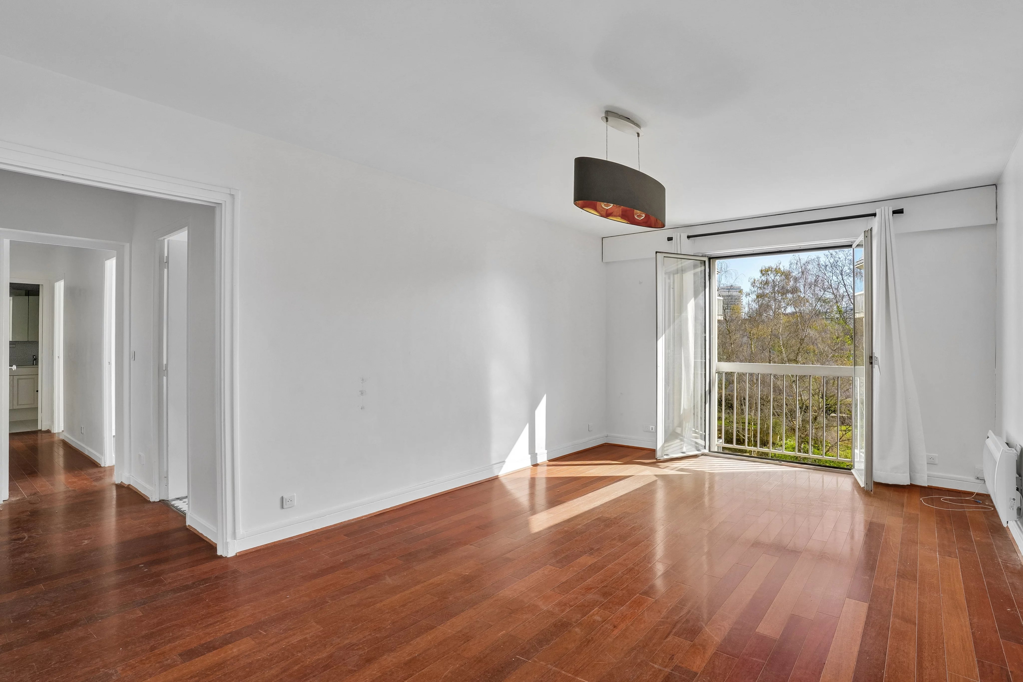 Il est composé d'une entrée, d'un beau séjour sur jardin, d'une cuisine séparée, de deux chambres, d'une salle de bains et d'un WC. Les cloisons, non porteuses, permettent une modularité des espaces.