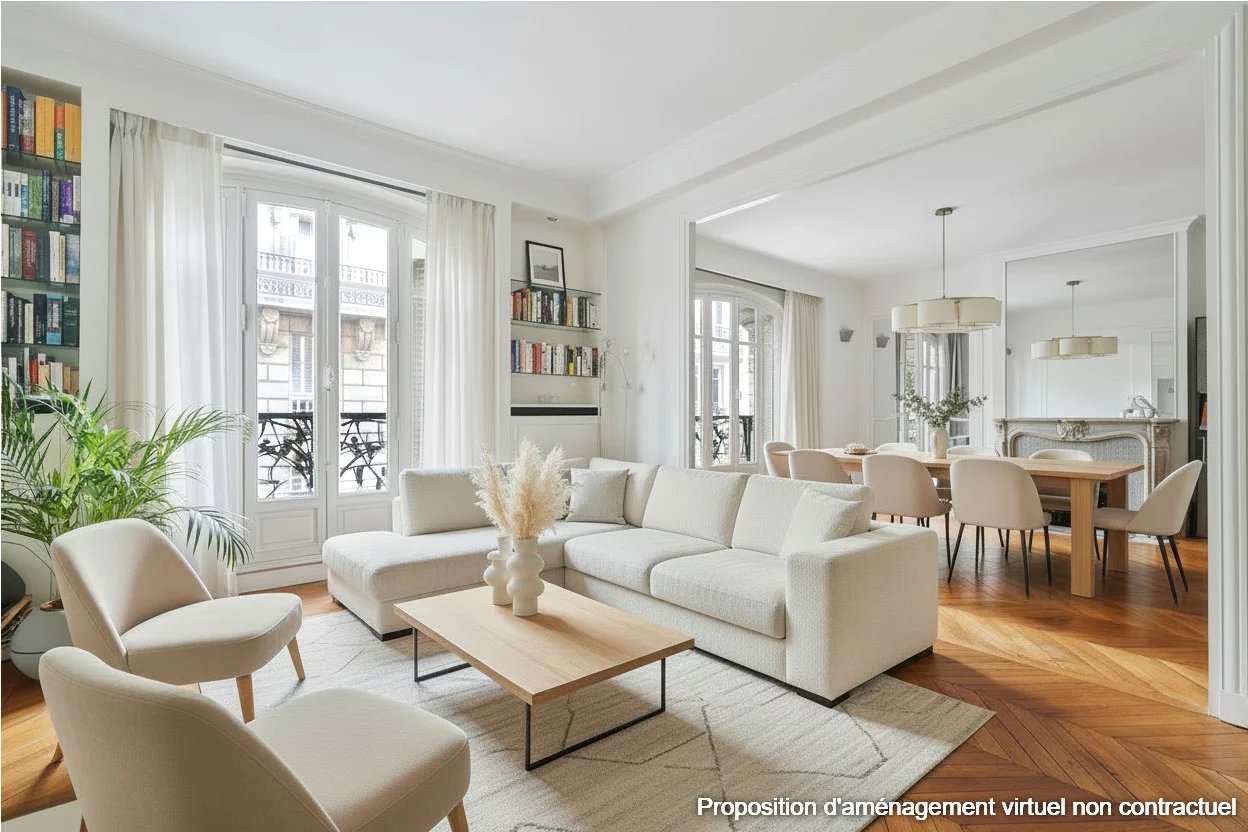 JASMIN - Au sein d'un bel immeuble Art Nouveau de standing, au premier étage par ascenseur, nous vous présentons un bel appartement familial de 148 m² Carrez et quatre chambres.