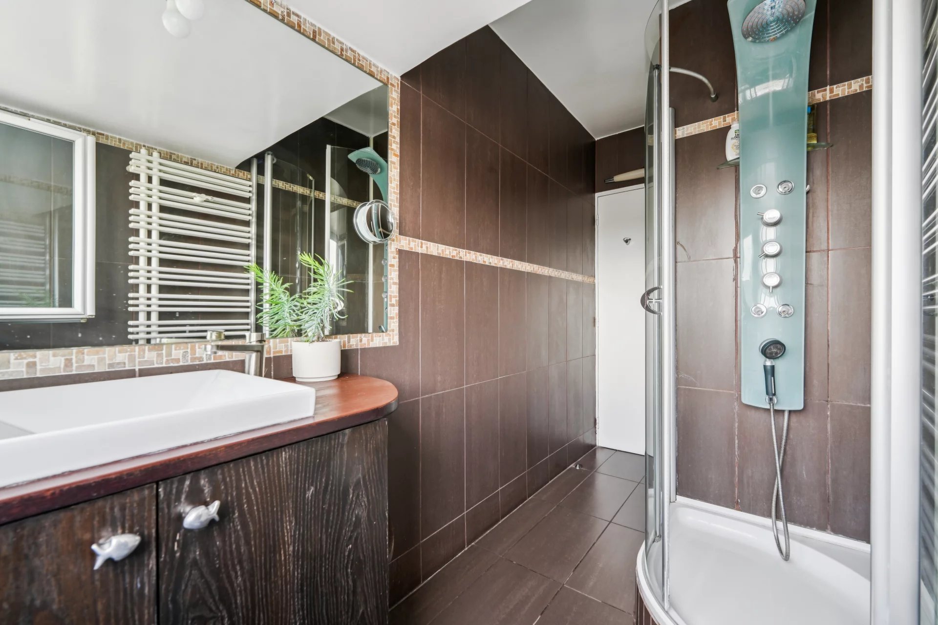 Situé au 8ème étage d’un immeuble bien tenu, construit en 1960, cet appartement bordé d’un balcon et d'une terrasse de 41m2 offre une vue spectaculaire sur La Défense, le Mont Valérien, la Tour Eiffel, les toits, le ciel et l’horizon.