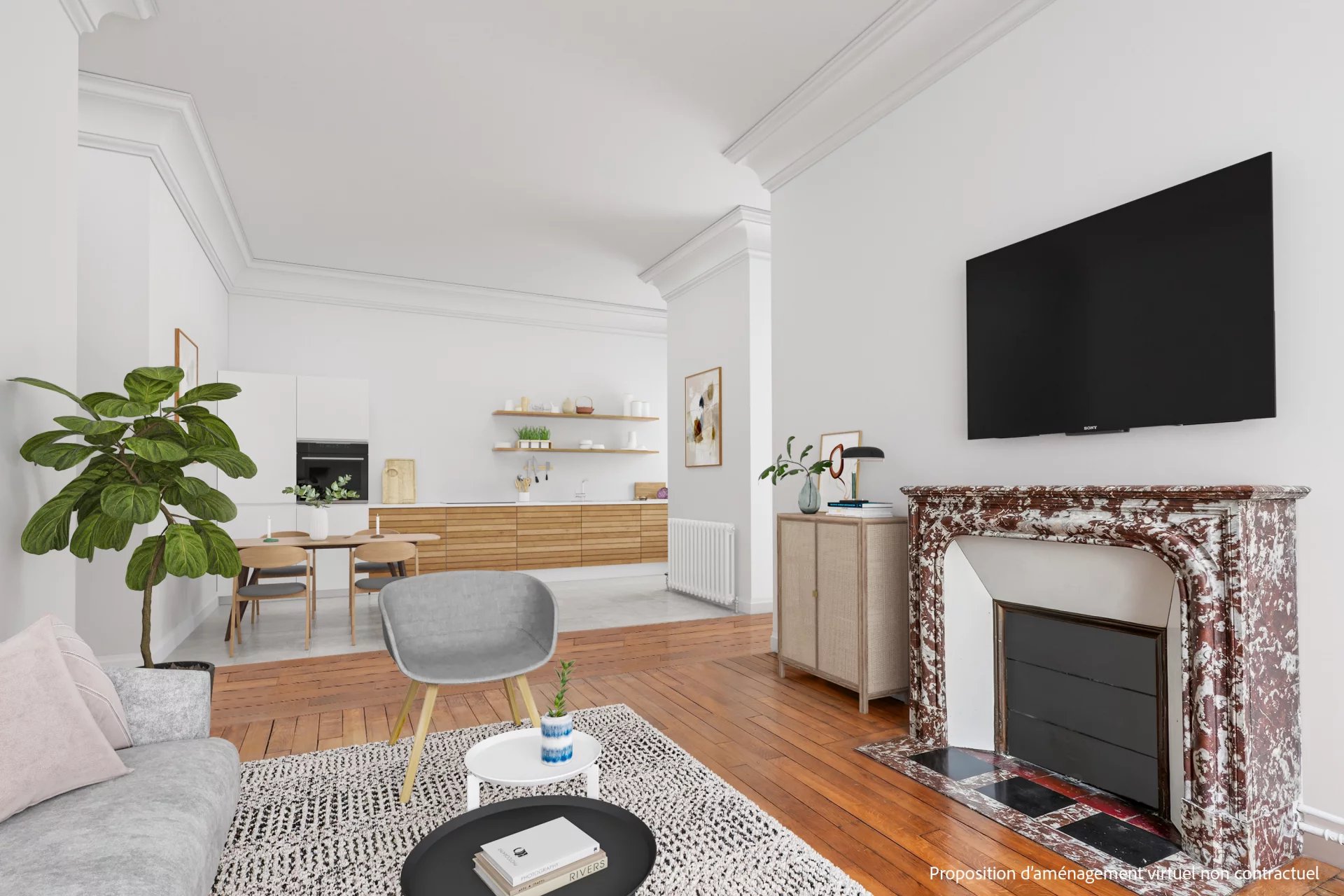 Bénéficiant du charme de l'ancien (parquet, moulures et cheminées), de beaux volumes (3 mètres 19 de hauteur sous plafond) et d'un grand calme, il se compose d’une entrée desservant un agréable séjour, une cuisine dinatoire, une chambre, une salle de bains et des toilettes séparées.