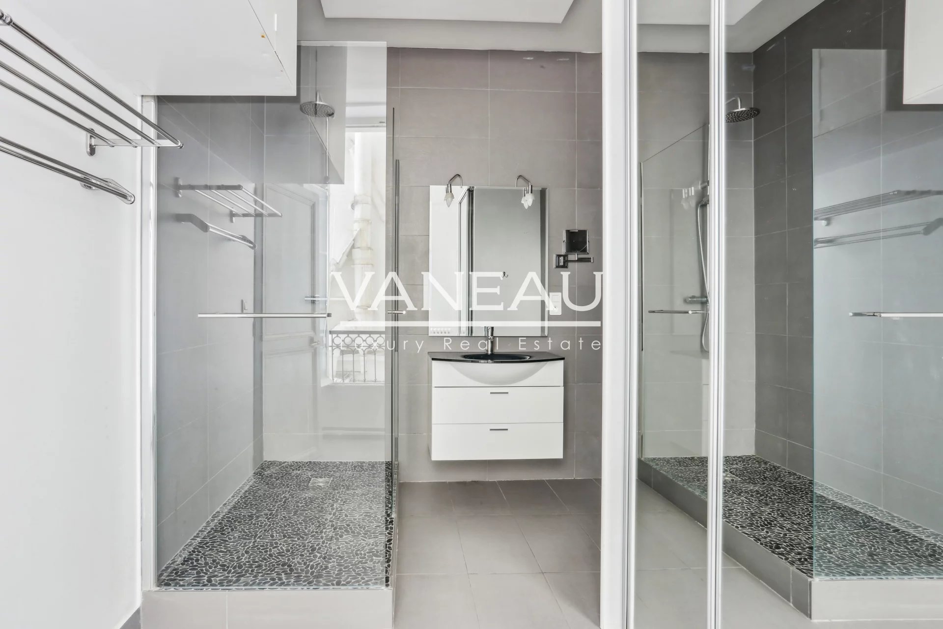 L'appartement a été entièrement rénové et décoré avec de beaux matériaux, de nombreux rangements ont été intégrés pour un espace de vie fonctionnel.