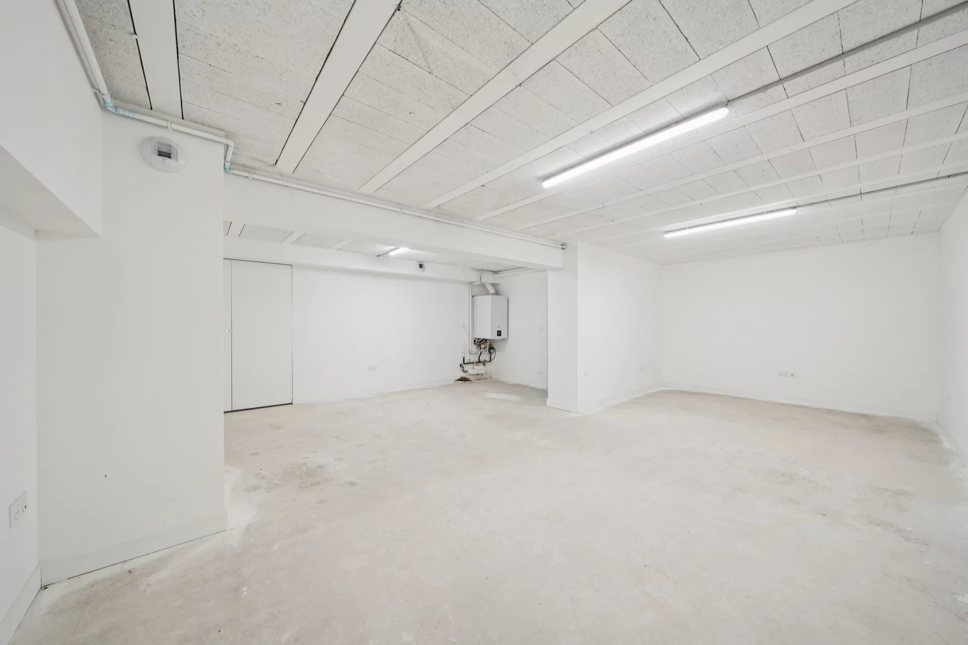 En sous-sol : un espace de 48 m² offre de multiples possibilités d’aménagement (salle de jeux, home cinéma, sauna, salle de sport).