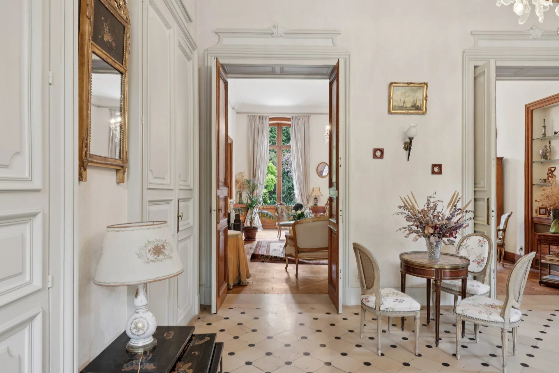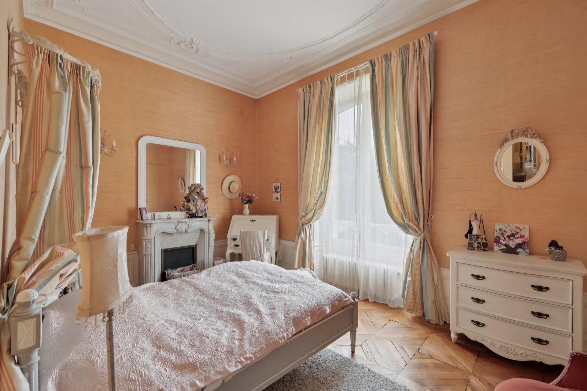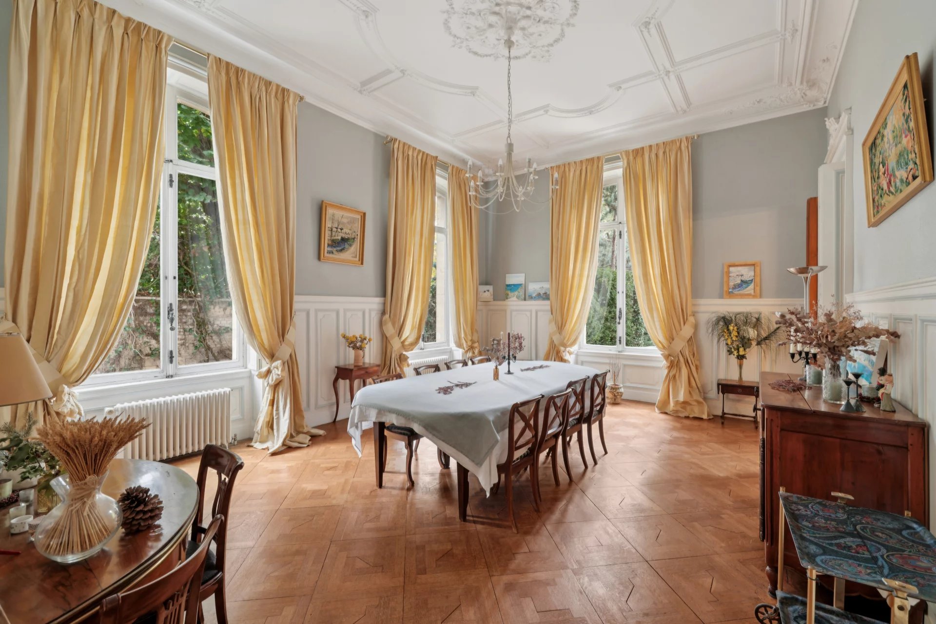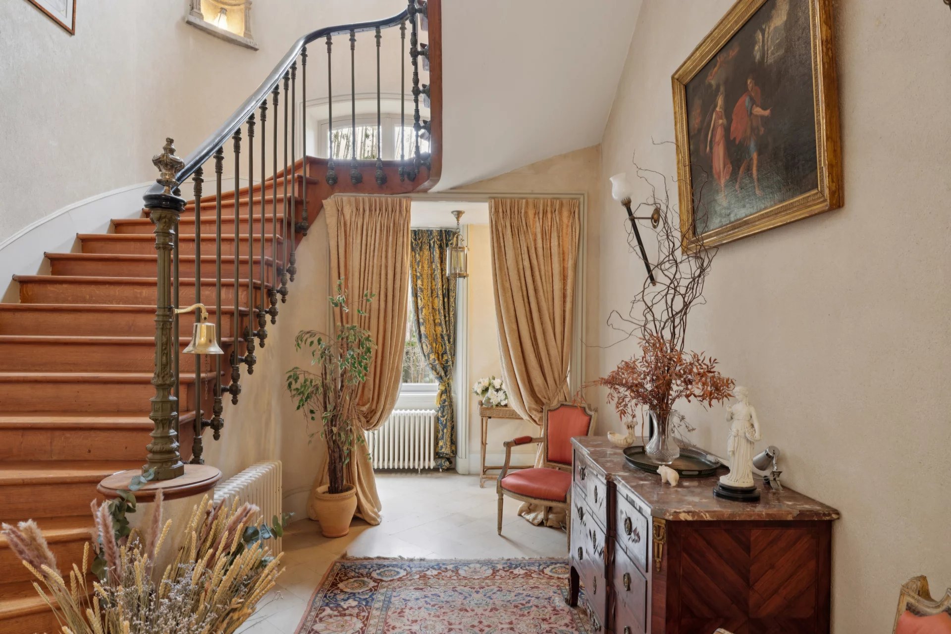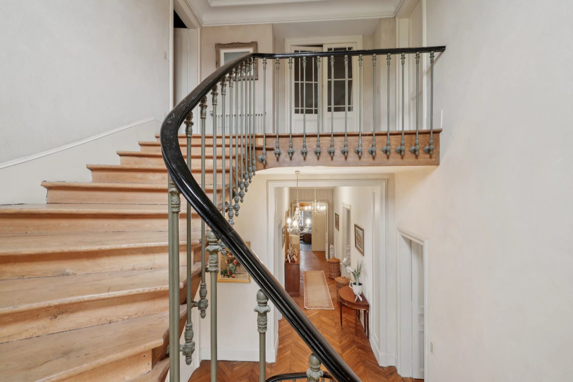 Sur trois niveaux, et sous sol total cette propriété de caractère séduit dès l’entrée par ses volumes généreux et ses éléments d’époque préservés : hauteurs sous plafond (jusqu’à 4,30 m), parquets en chêne, cheminées en marbre et moulures d’origine.