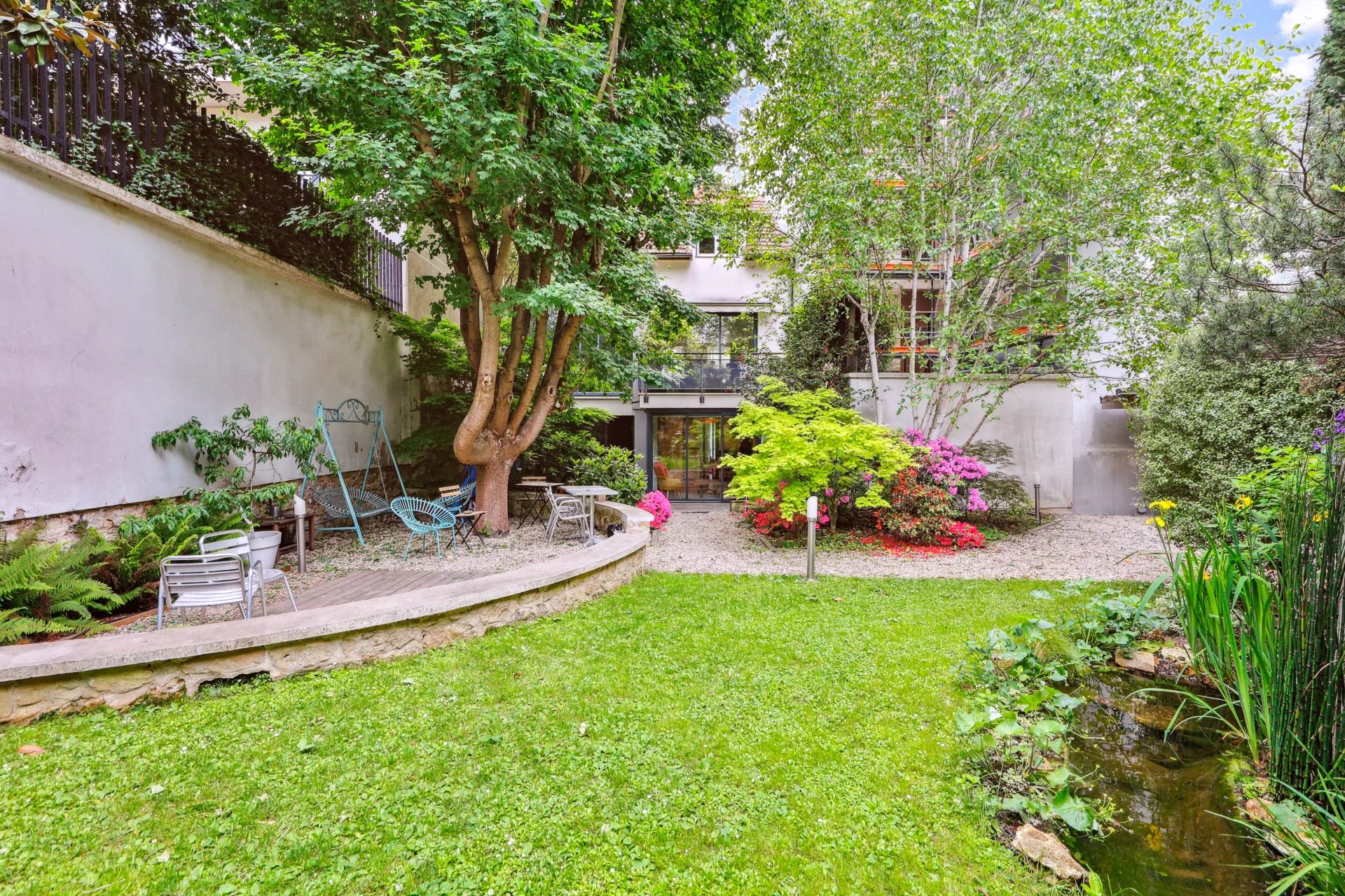 Dans une partie de la "via Turonensis", connue par les pèlerins du Chemin de Compostelle, mitoyenne de la dernière ferme de Paris, le groupe VANEAU présente une maison construite en 1860, ayant fait l’objet d’une rénovation complète en 1995. Devenue maison contemporaine de type « architecte », cette dernière est bâtie sur quatre niveaux. Sécurisée depuis la rue, ce bien pourrait être décrit de la manière suivante : Au rez-de-chaussée, à gauche de l’entrée, un couloir, avec toilettes indépendants. Dans le prolongement sur rue, une large salle de bain. En face, un dégagement ouvert vers l’escalier principal. Vers le jardin arboré un large espace « jardin d’hiver » sous verrière, avec accès direct à ce dernier. Sur la partie à gauche, une ancienne chambre servant de bureau, attenante à la salle de bain et un autre pièce orientée vers le jardin, construite comme une véranda. Au 1er étage, une très large pièce à vivre, éclairée par une grande verrière avec accès direct à une terrasse orientée vers le jardin. En équerre sur rue, une large cuisine avec son espace dinatoire. Au 2ème étage, trois chambres, dont une plus petite servant de chambre enfant. Des toilettes indépendantes et salle de bain avec douche sont également à ce niveau. Au sous-sol : une cave avec emplacement pour la chaudière à gaz. La vraie richesse de la maison : son jardin exceptionnel de 317 m².
